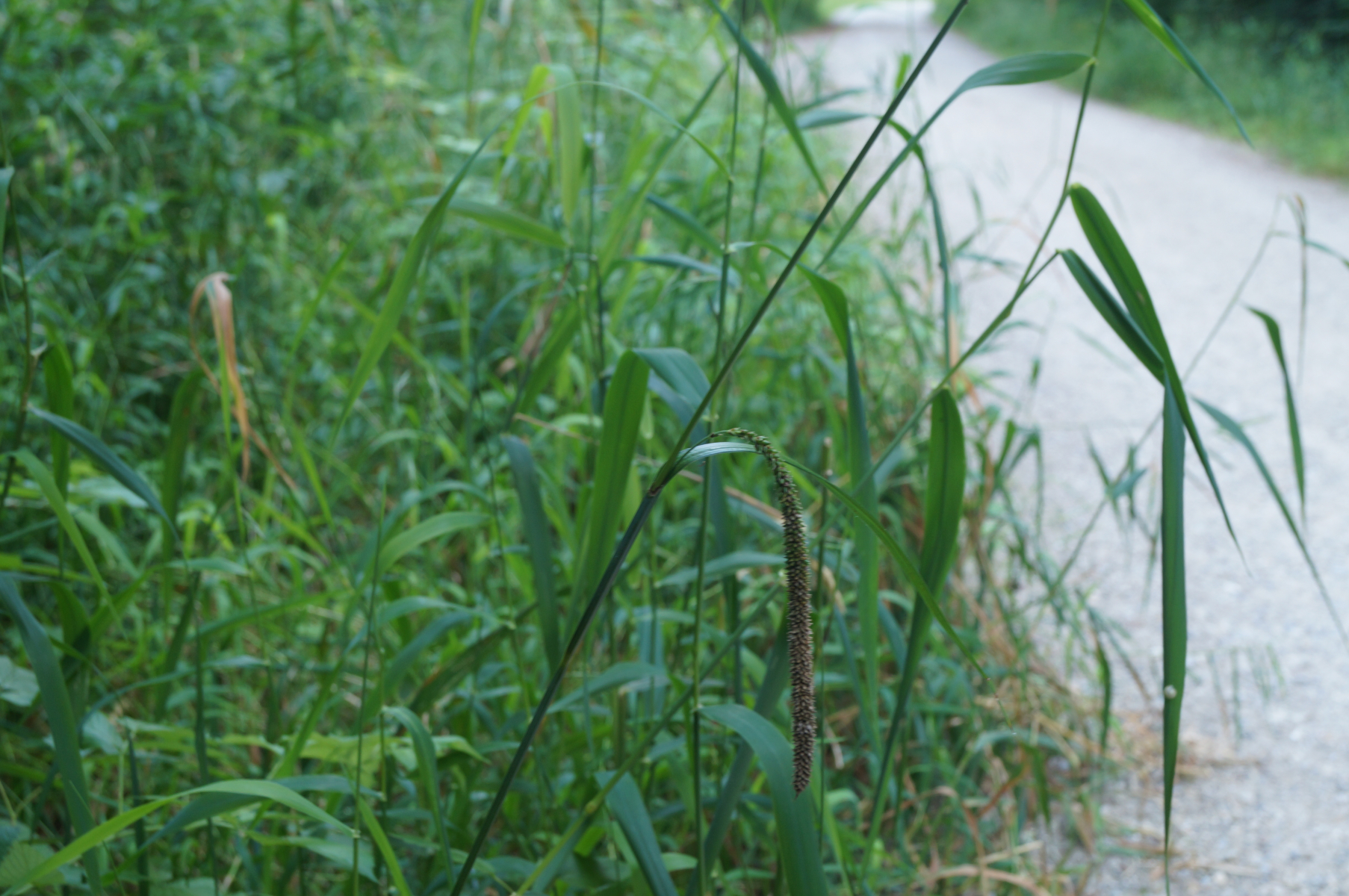 Carex cf pendula - Hängesegge; ansonsten gilt das alte Botaniker-Sprichwort: "Die Weiden und die Seggen sind des Botanikers Schrecken." ![]()