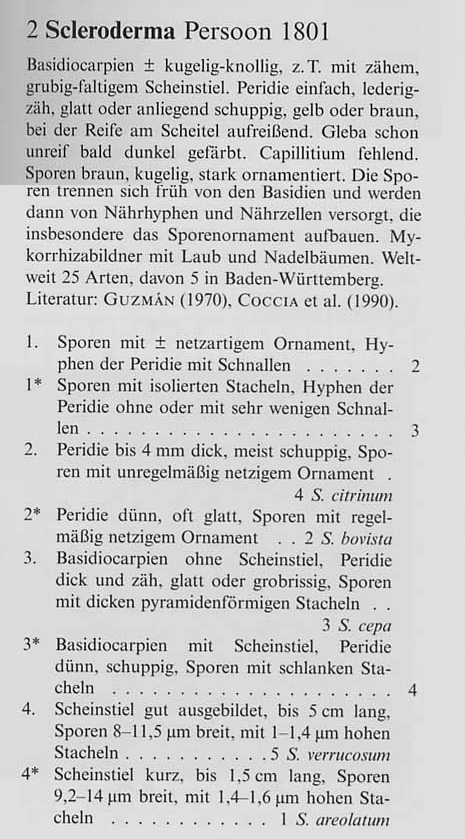 Nach langem hin und her (ob S. areolatum oder S. verrucosum), habe ich mich wegen der kleinen Sporen für die Scleroderma verrucosum entschieden.