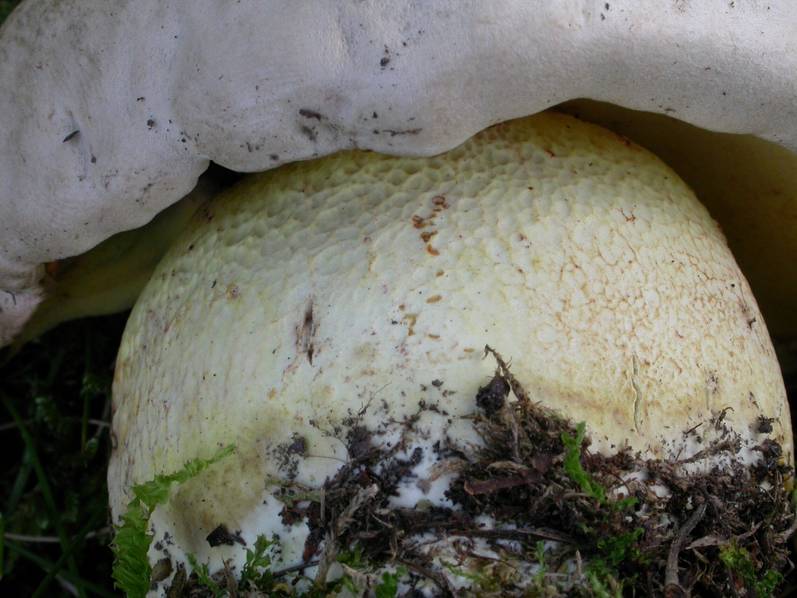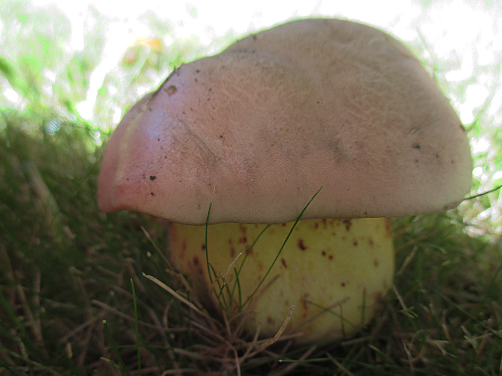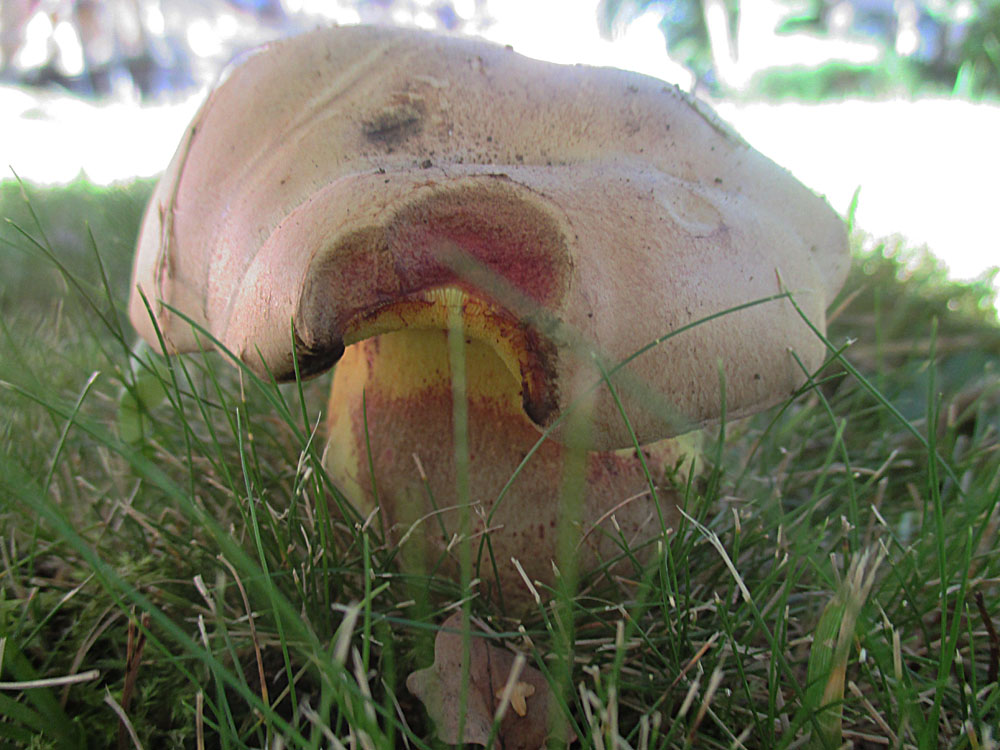 Dann war das rosa auf dem ersten Bild vermutlich nur ein Reflex. Hier jedenfalls zeigt mir mein Monitor inchts Rosanes mehr auf dem Hut, die Netzzeichnung am Stiel und das fehlen von rötlichen Farbtönen am Stiel würden aus meiner Sicht ebenfalls richtung "normalem" WuBi (Caloboletus radicans) weisen.