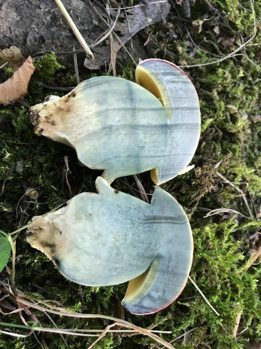 Der Pilz hatte zunächst einen hellen, silbergrauen Hut. Sobald wir ihn entnahmen, schien sich der Hut plötzlich ins rosa zu verfärben. Geblaut hat er am Stiel und in den Röhren. Geruch war unauffällig, pilzig. Aber der Geschmack hat uns irre gemacht: angenehm, kräftig nussig. Im Schnitt hat der Pilz komplett und sofort geblaut, welches später ausbleichte. Aufgefallen ist eine rote Linie direkt unter der Huthaut, die aber nicht den gesamten Hut überspannte. Wir haben den Pilz heute Abend in der Videokonferenz diskutiert und es kam der Name Caloboletus kluzakii als Arbeitsname auf den Tisch. Das Stielnetz habe ich erst entdeckt, als ich konkret danach gesucht habe. Nur ein kleines bisschen oben an der Stielspitze. Nach der Konferenz und einer raschen Recherche bin ich auf diesen Thread gestoßen. Meine Frage an Christoph Tricholomopsis wäre zunächst: gibt es neue Erkenntnisse zu diesem Pilz ? Ich habe das Exemplar mitgenommen und könnte den als Exsikkat, auch für eine eventuelle Sequenzierung, zur Verfügung stellen.