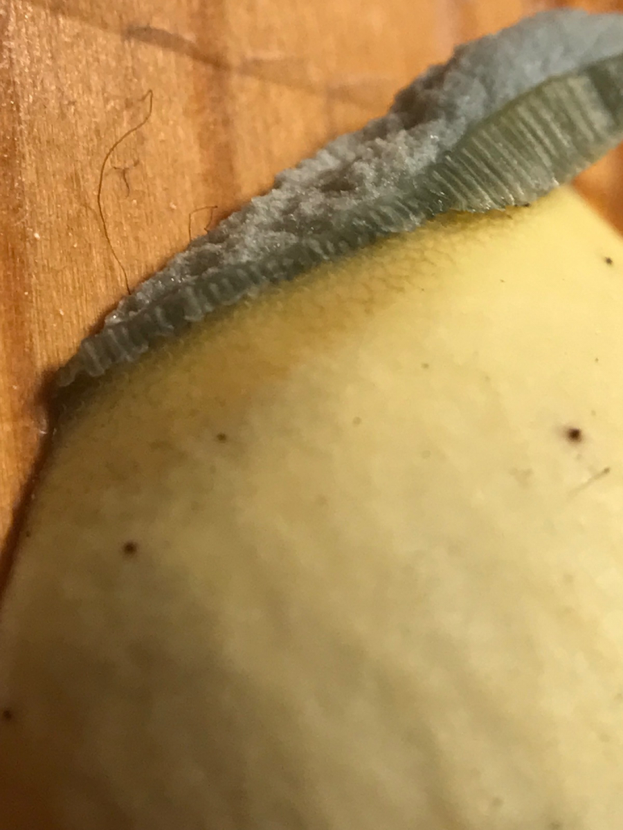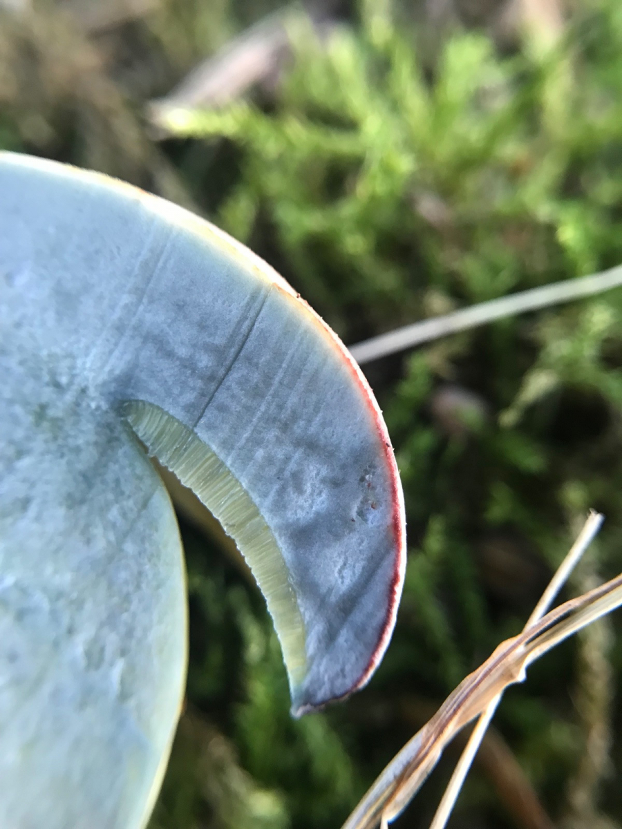 Dazu müsste man aber freilich einen Fruchtkörper abmachen und umdrehen (bzw. längs schneiden). Das schadet dem Pilz selbst zwar nicht, aber wenn man den Fruchtkörper nicht opfern möchte (was auch ok ist), muss man eventuell mit einer gewissen Unsicherheit hinsichtlich der Bestimmung rechnen.