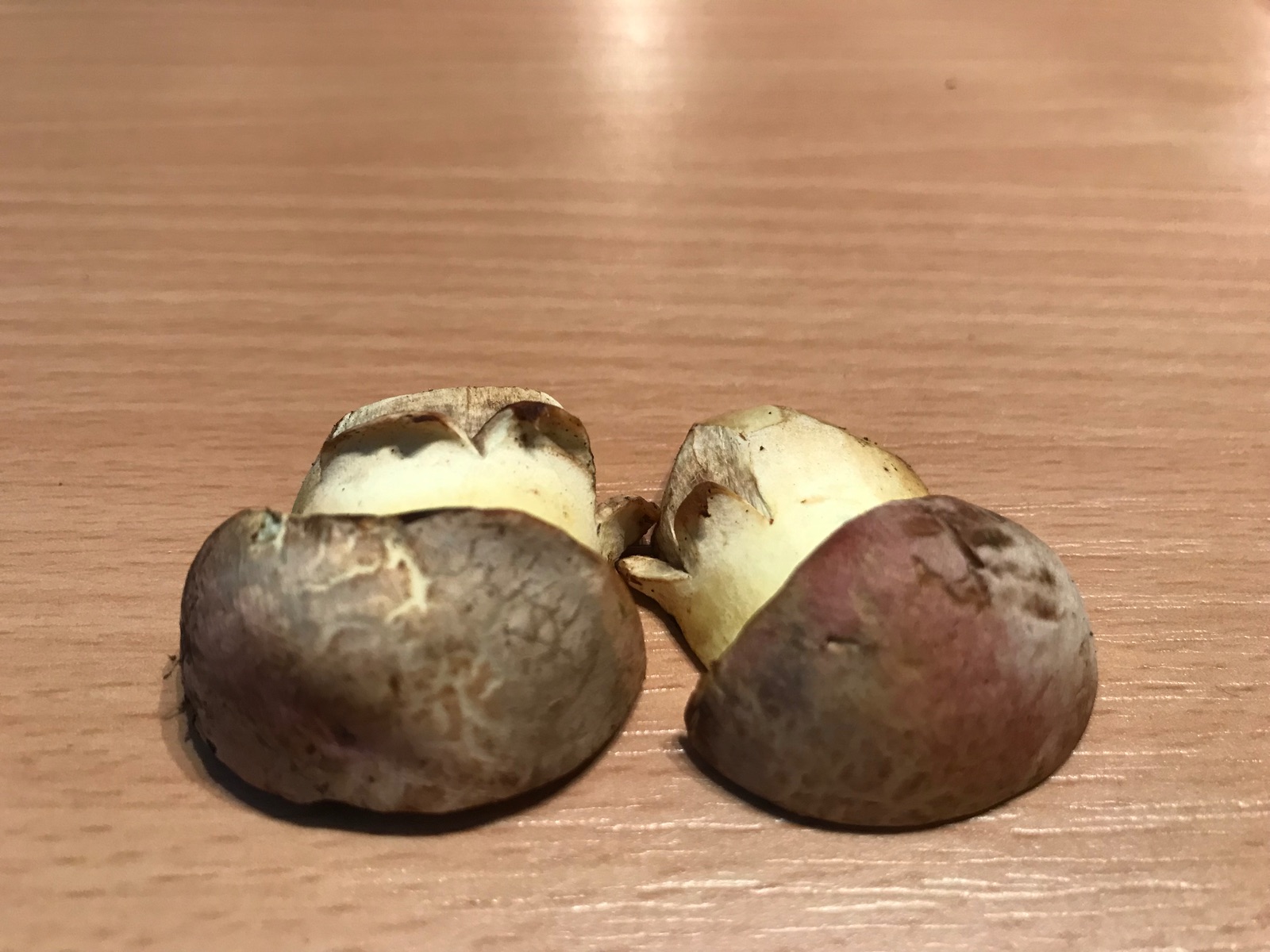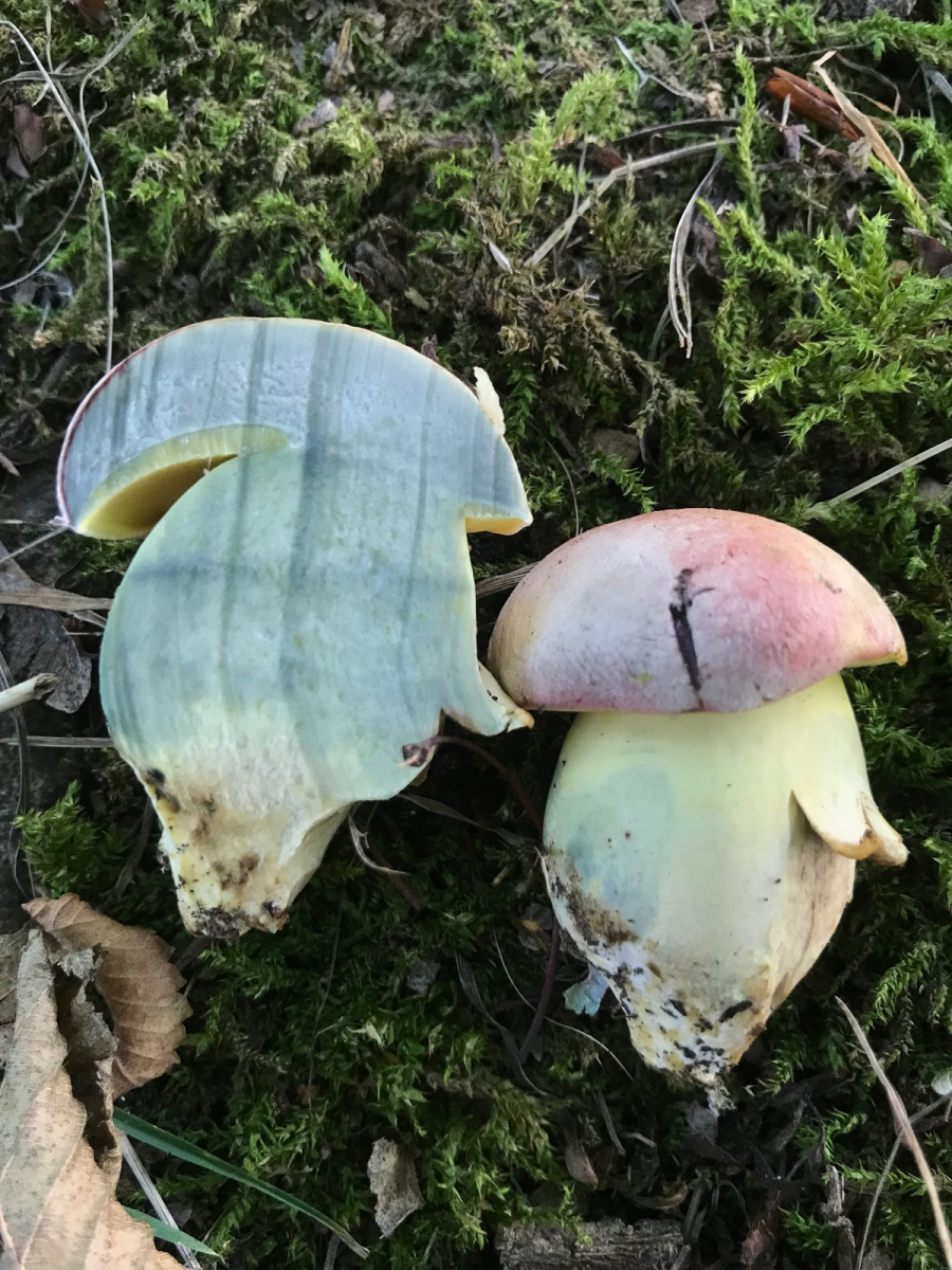 - man z. B. auch bei Rubroboletus satanas Fruchtkörper mit rosa Hutfarben bzw. roter Subkutis beobachten kann