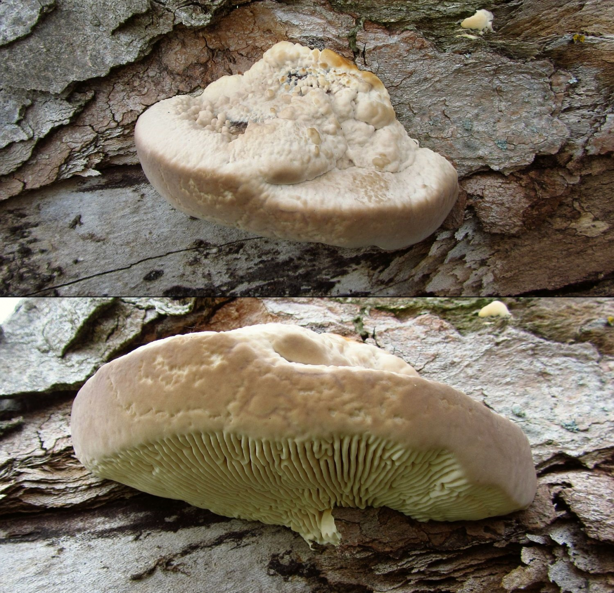Die hier besiedeln einen alten, dicken Pappelstamm, der offen (sonnenexponiert) an einem Rheindeich im süden Mannheims liegt - das Substrat muss er sich mit allerlei anderen Pilzen teilen, darunter auch ein Auenblättling (Lenzites warnieri), der hier ebenfalls immer mal wieder zu finden ist.