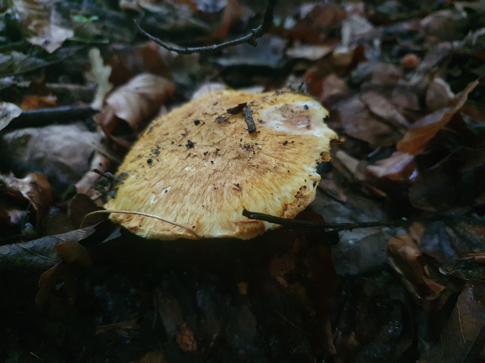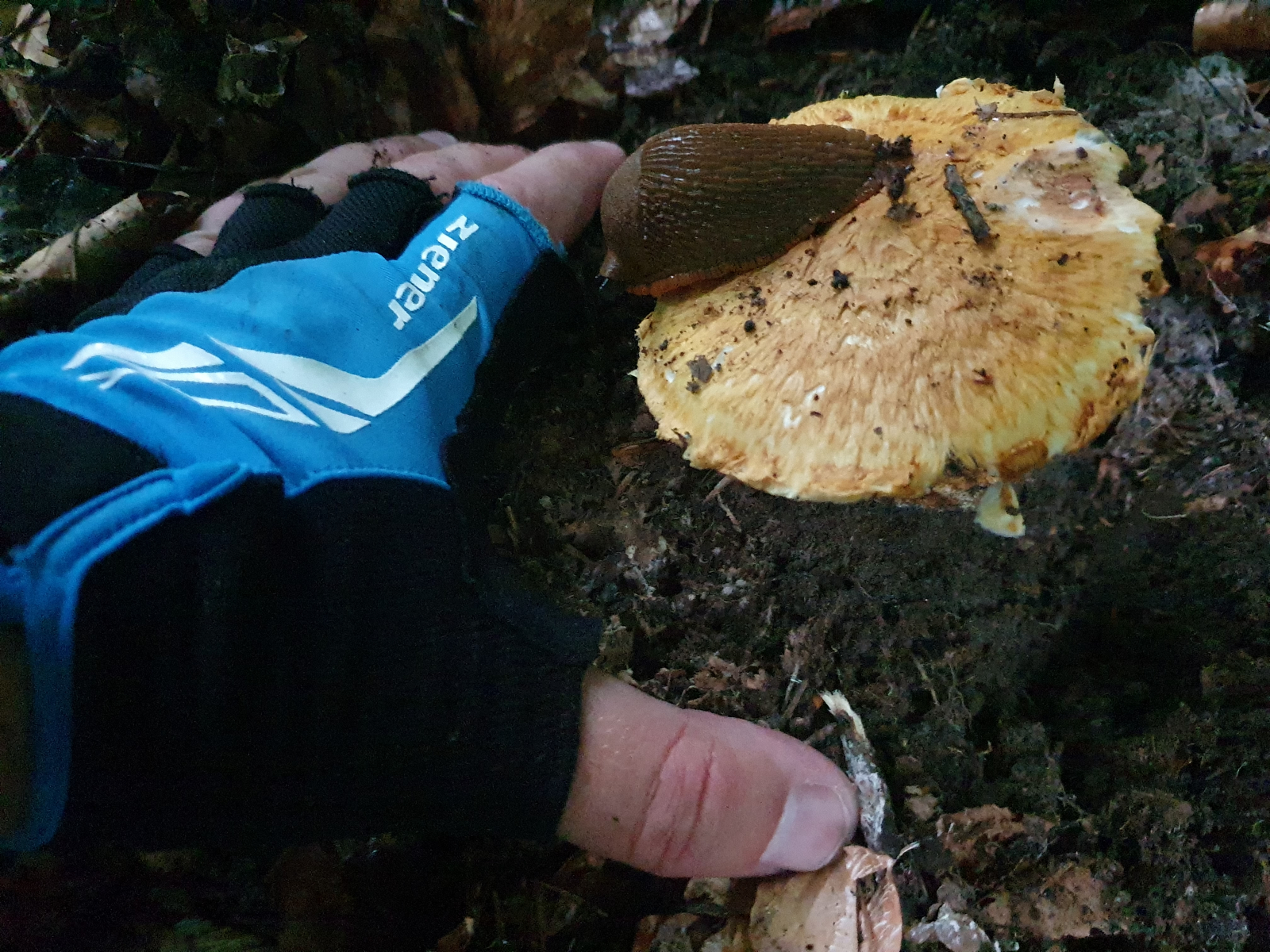 Nun denn, ich hatte ihn auf Facebook gepostet und tags darauf mit einem renommierten Pilzexperten nochmals besucht, fotographiert und kartographiert. Wir haben dann den Hut des Pilzes ein bisschen mit Laub zugedeckt und ihn stehen gelassen.