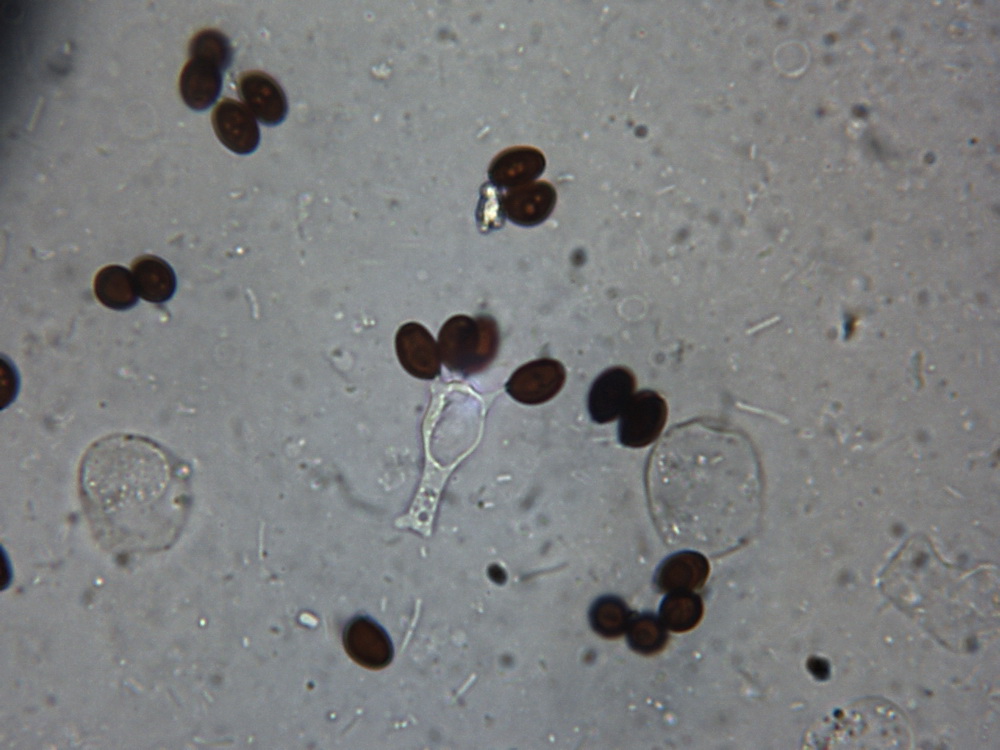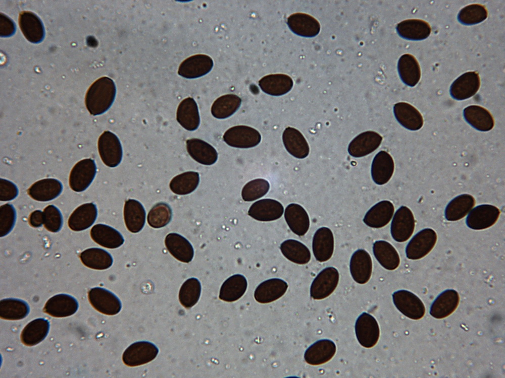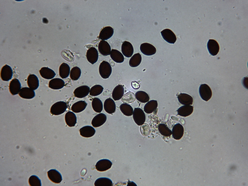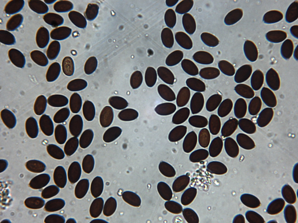 Sporen: 8,7 - 10,5 x 5,4 - 6,3 µm, in Aufsicht breiter als im Profil!