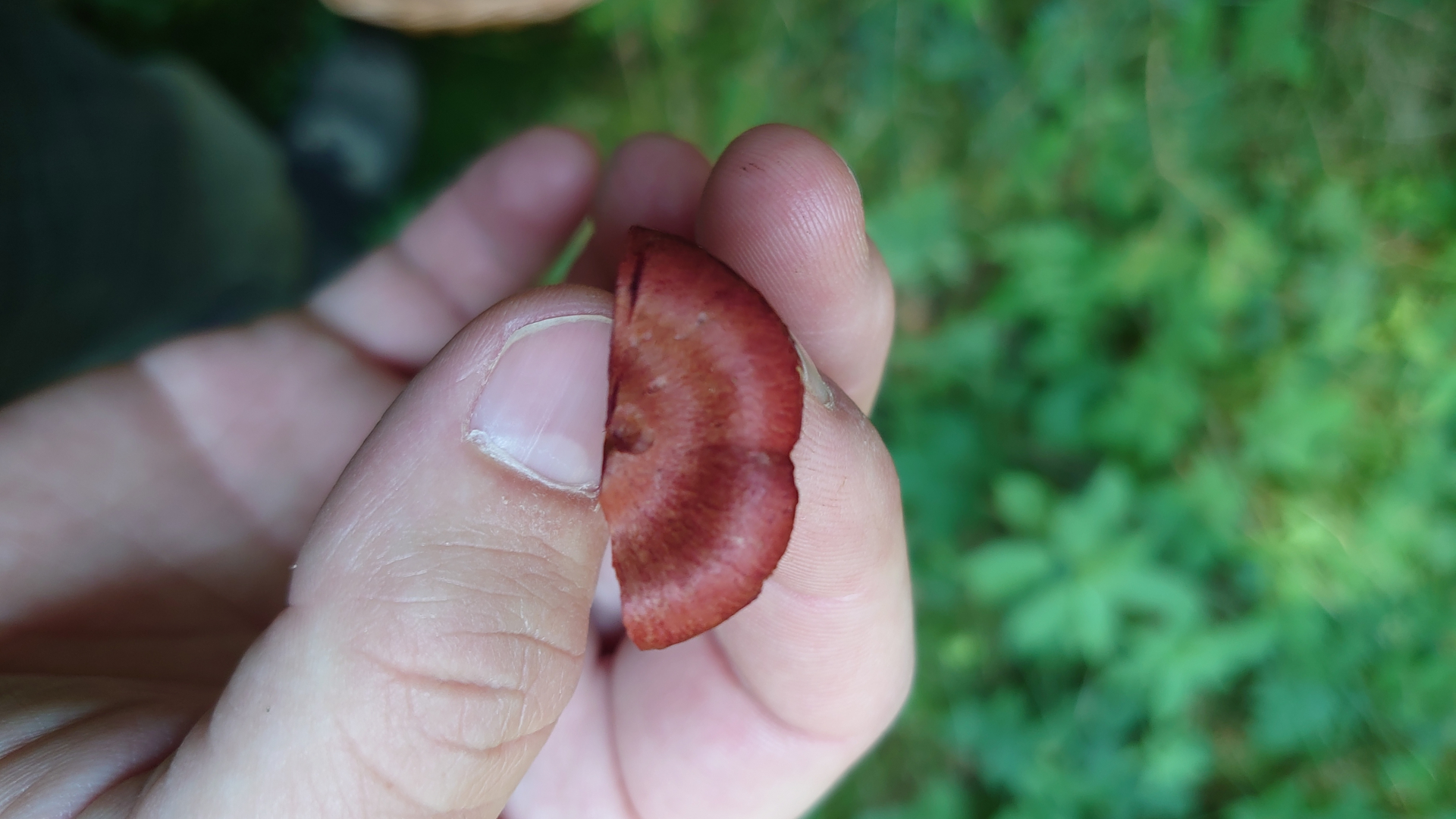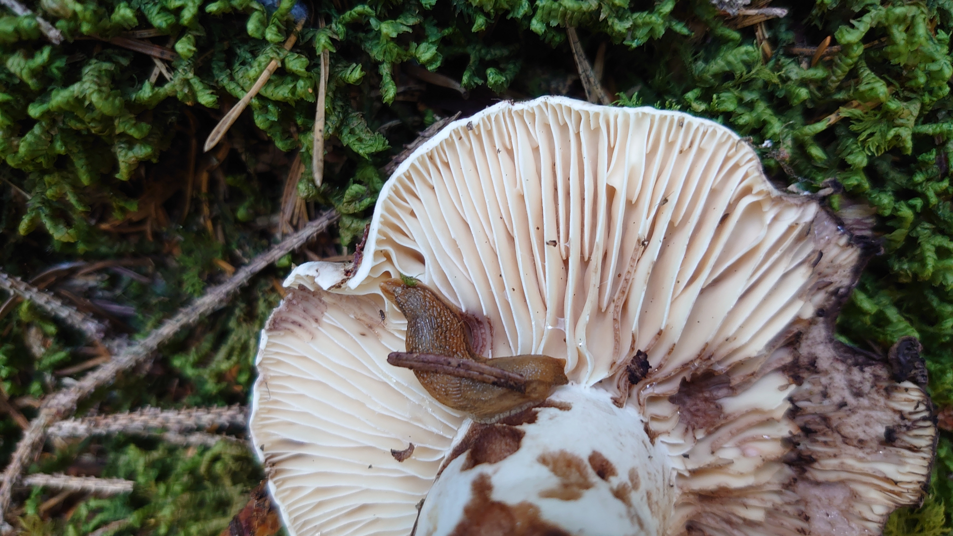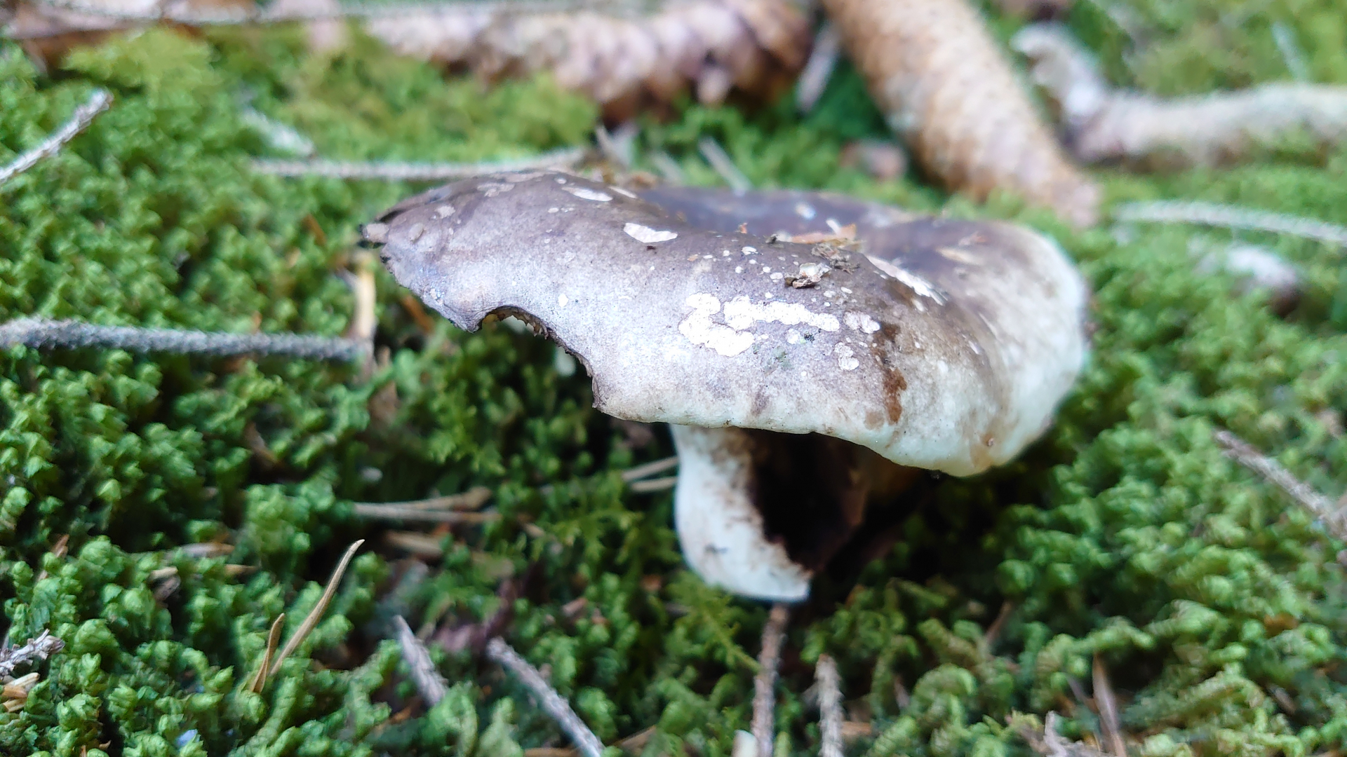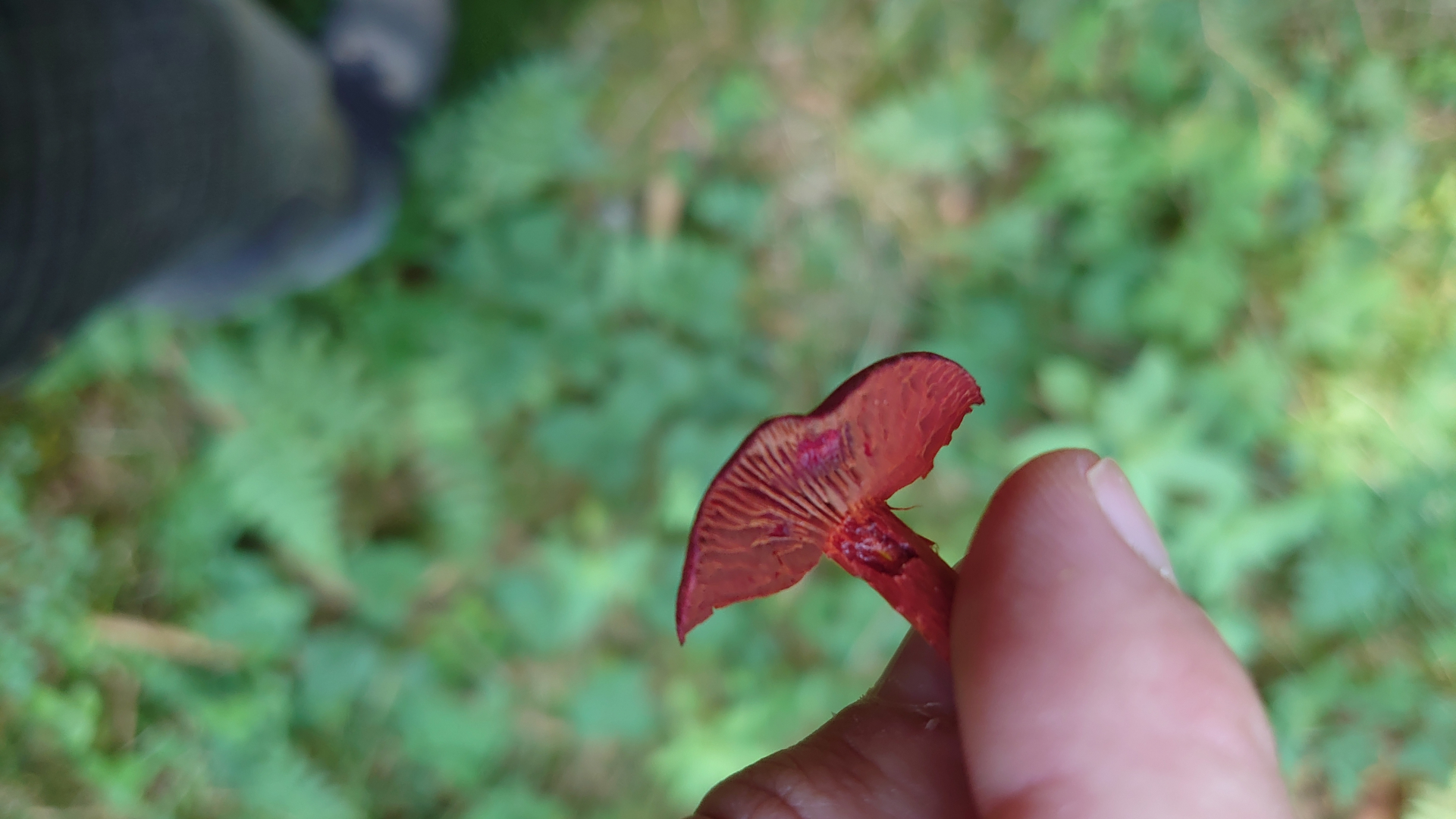 Meine Schätzung hier wären Papageientäubling (hier habe ich leider nicht mal die Ansicht von unten, aber die Lamellen waren weiß) und Dickblättriger Schwarztäubling. Vielleicht sind die Merkmale hier ja so markant, dass eine Makroskopische Bestimmung möglich ist.