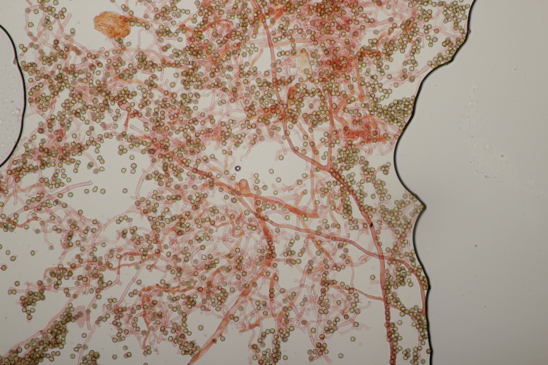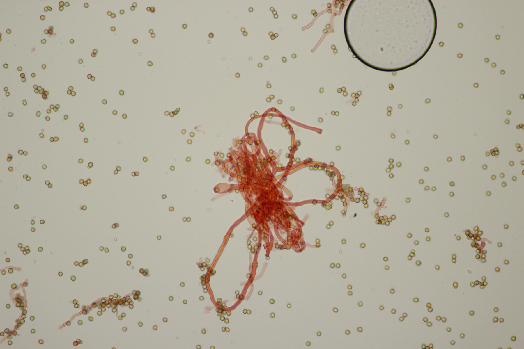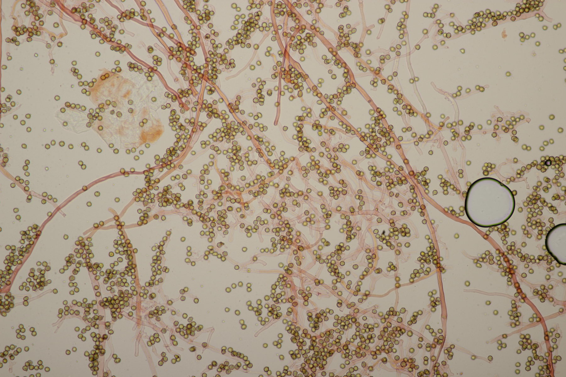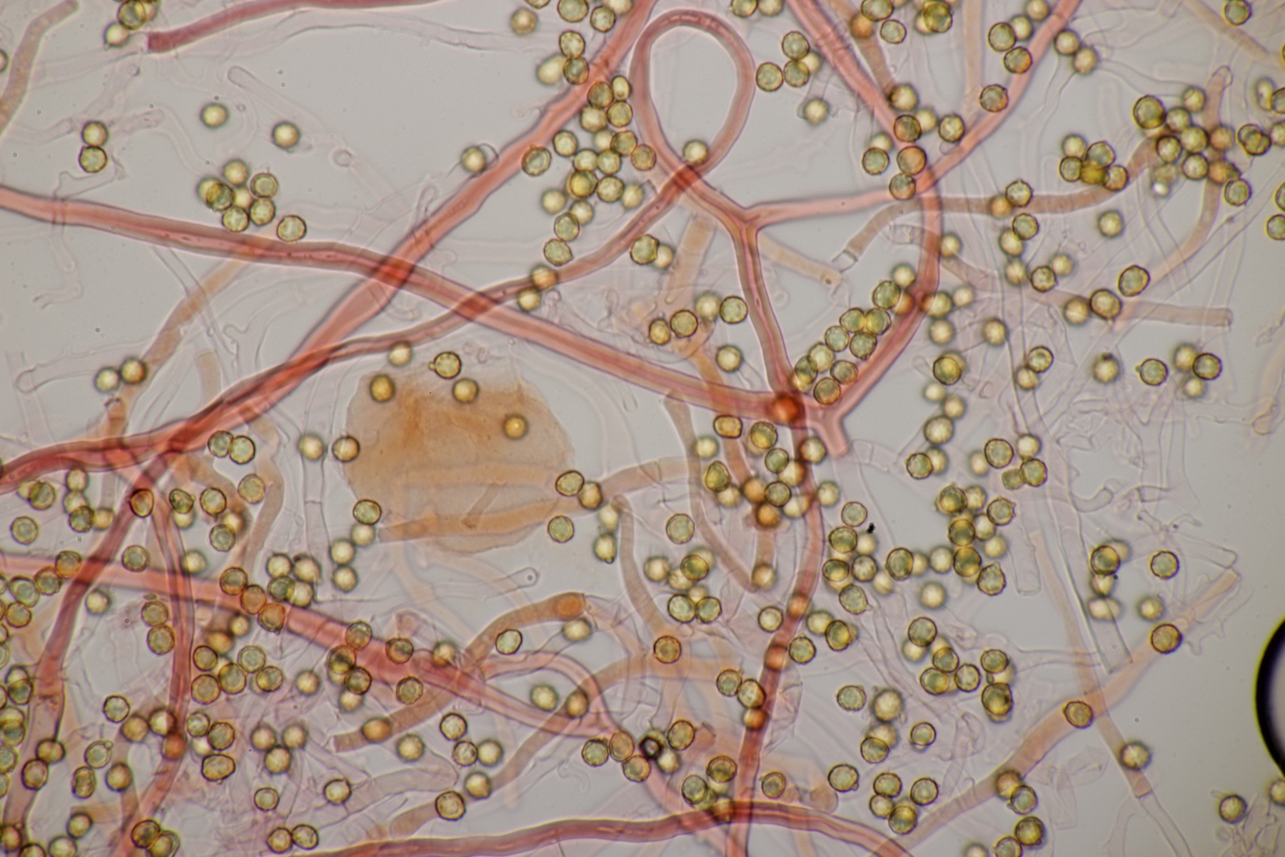 die Stielboviste sind heute bei mir angekommen und ich habe mal direkt einen Blick mit dem Mikro reingeworfen. Sporen habe ich nur mal eben auf die Schnelle gemessen: (4.0-) 4.5+-0.3 (-5.2) µm (Wer selber messen möchte: Auf den Bildern mit dem 100er-Objektiv in voller Auflösung entsprechen 2317 Pixel genau 100 µm). Bilder in Wasser bzw. Kongorot/NH3.