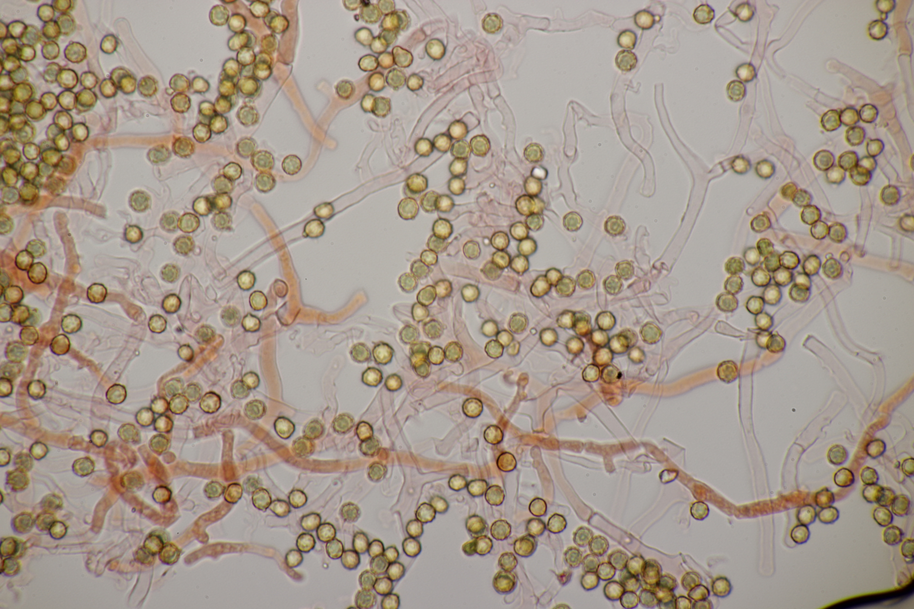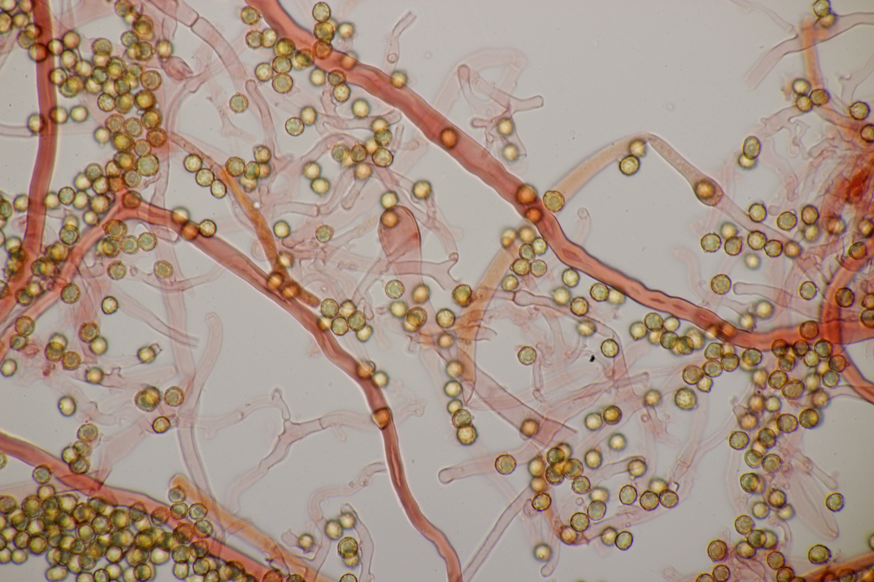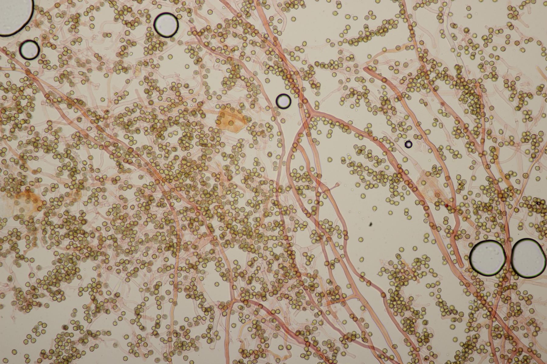 die Stielboviste sind heute bei mir angekommen und ich habe mal direkt einen Blick mit dem Mikro reingeworfen. Sporen habe ich nur mal eben auf die Schnelle gemessen: (4.0-) 4.5+-0.3 (-5.2) µm (Wer selber messen möchte: Auf den Bildern mit dem 100er-Objektiv in voller Auflösung entsprechen 2317 Pixel genau 100 µm). Bilder in Wasser bzw. Kongorot/NH3.