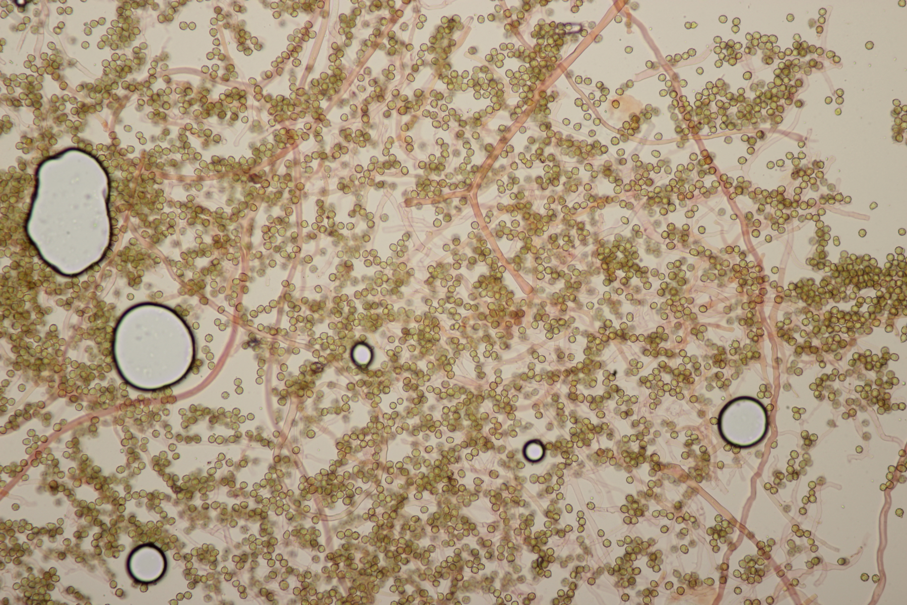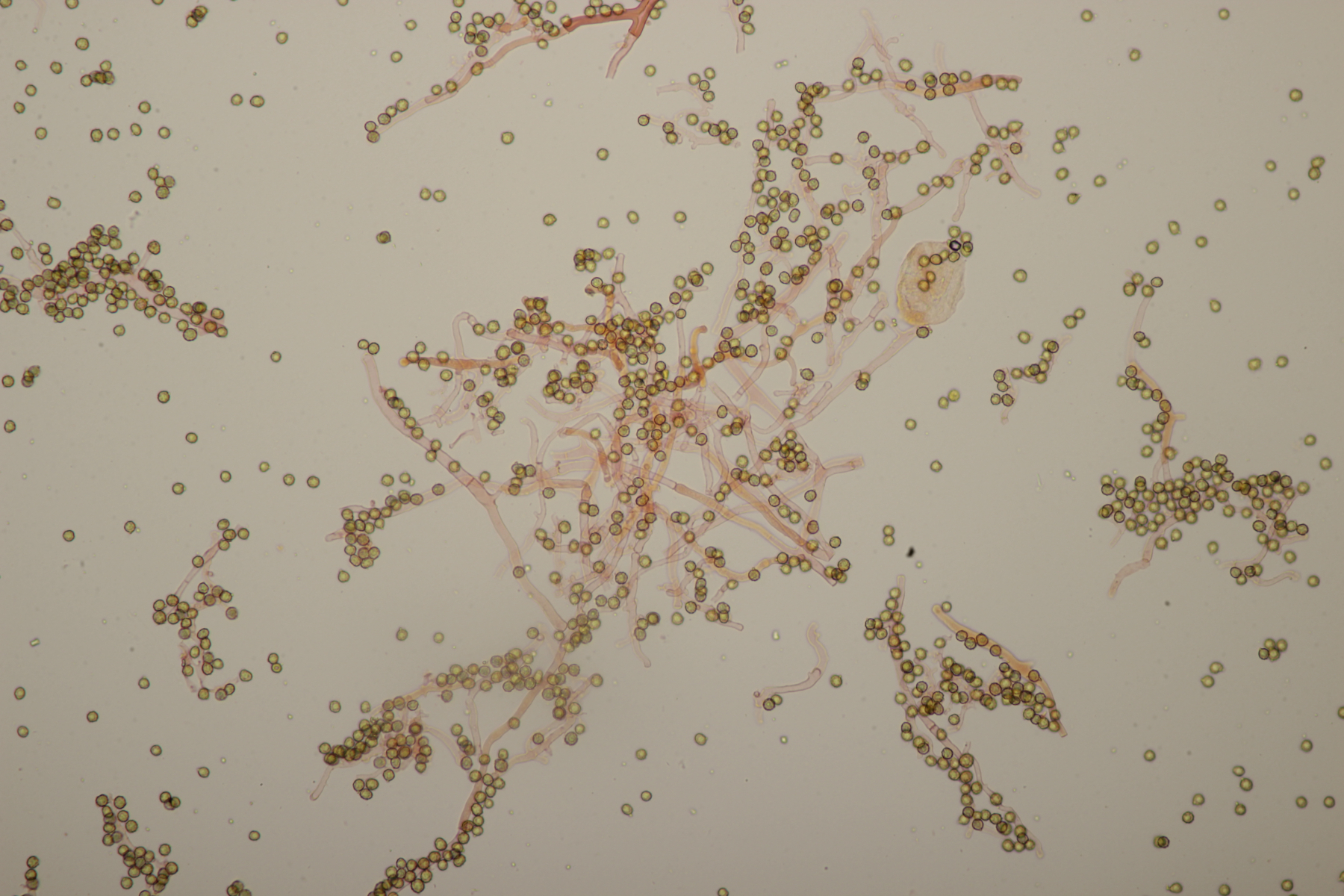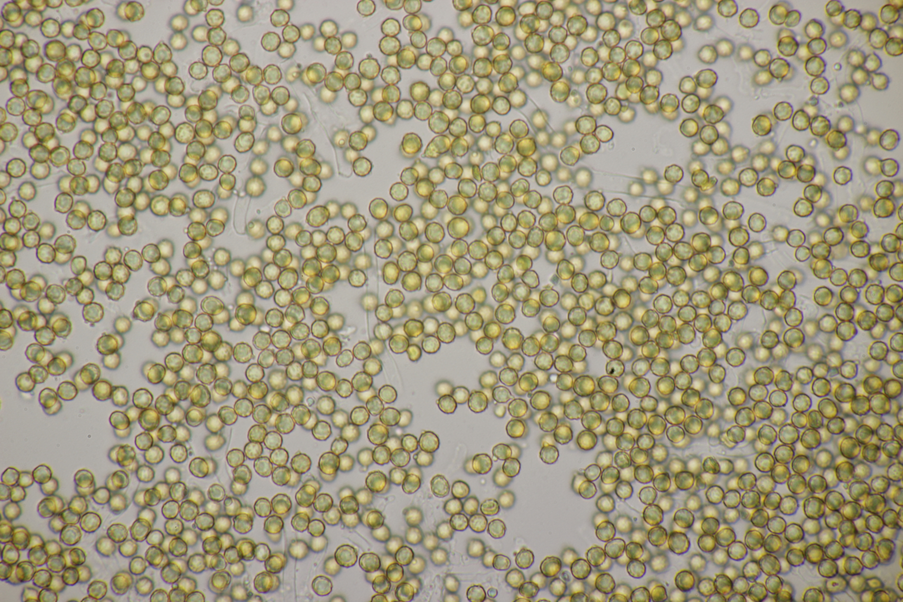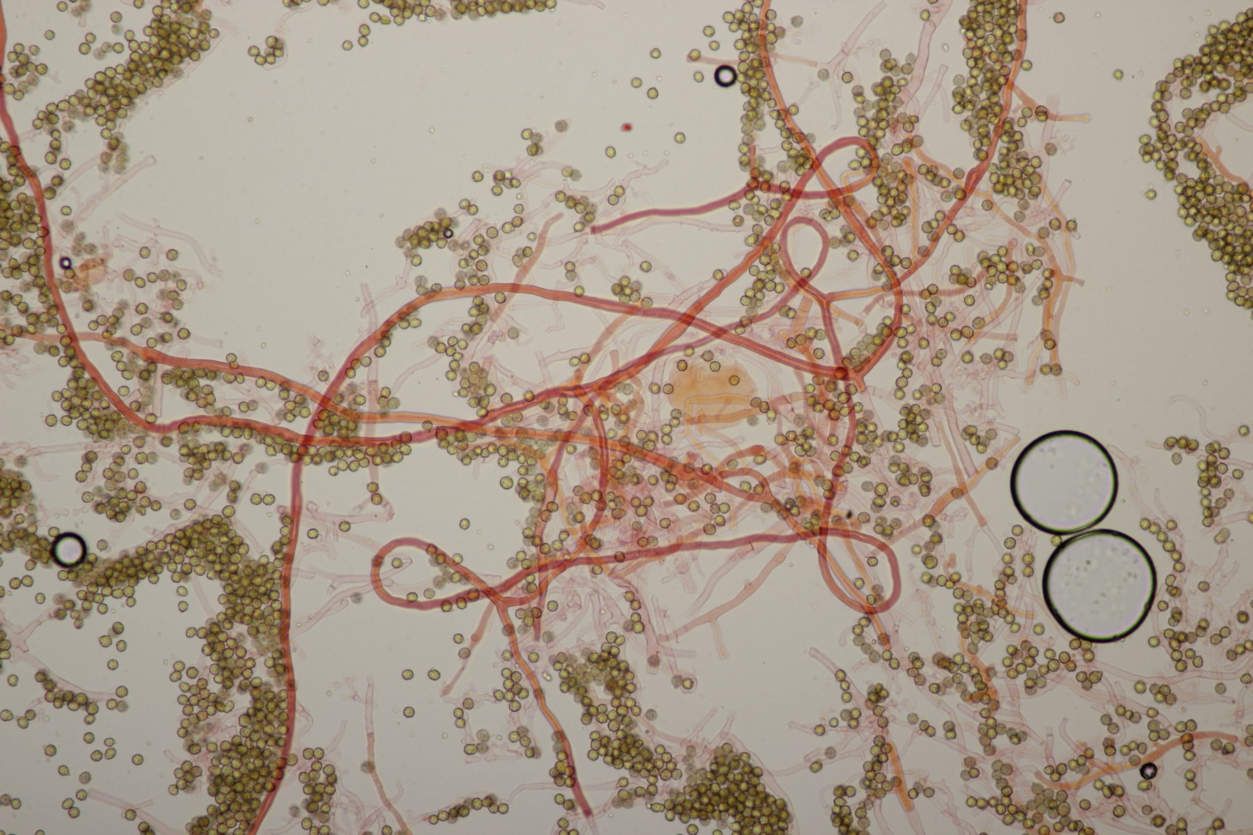 die Stielboviste sind heute bei mir angekommen und ich habe mal direkt einen Blick mit dem Mikro reingeworfen. Sporen habe ich nur mal eben auf die Schnelle gemessen: (4.0-) 4.5+-0.3 (-5.2) µm (Wer selber messen möchte: Auf den Bildern mit dem 100er-Objektiv in voller Auflösung entsprechen 2317 Pixel genau 100 µm). Bilder in Wasser bzw. Kongorot/NH3.