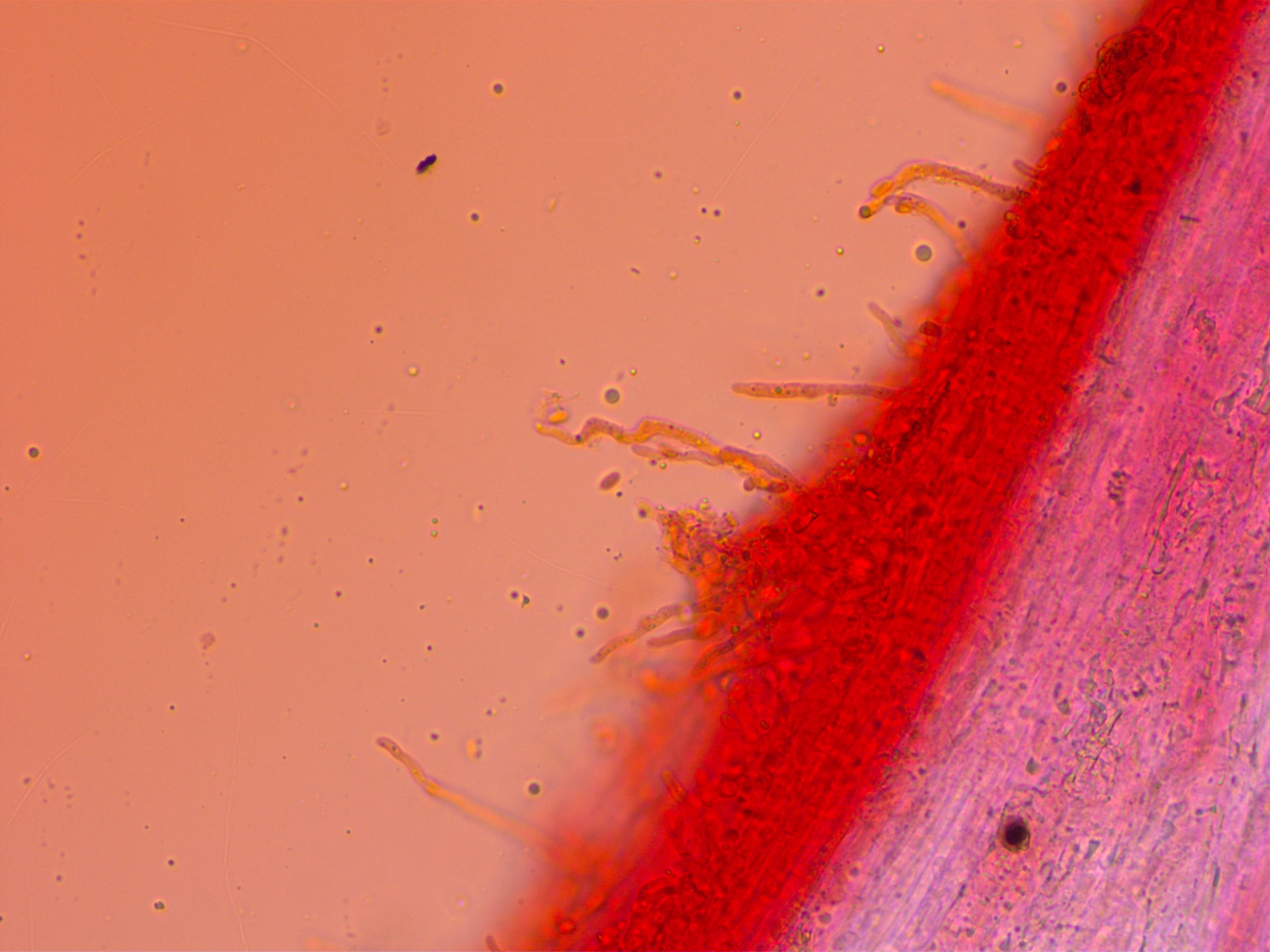 - Trotz intensiver Suche konnte ich keine einzige Cheilozystide finden, dafür aber zwei vermeintliche Pleurozystiden mit Korkenzieher-Spitze.