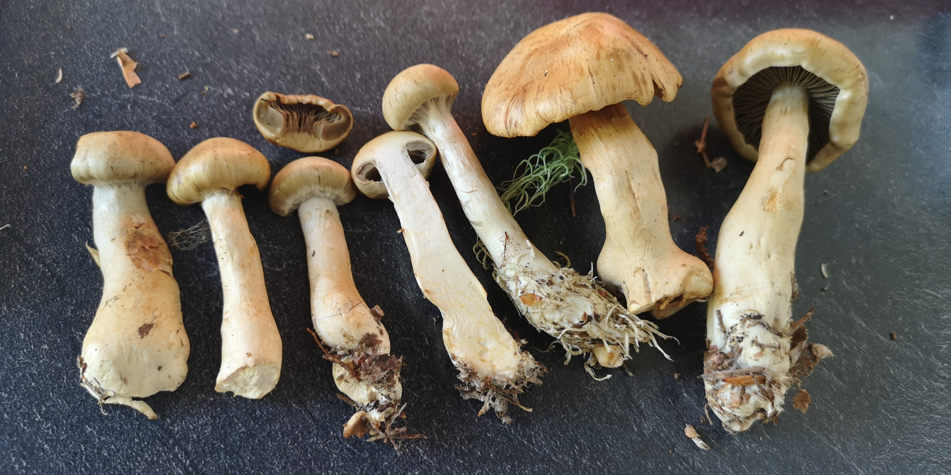 Vor ein paar Tagen habe ich im sauren Fichtennadelwald mit eingestreuten Buchen eine Kollektion Schleierlinge gefunden.