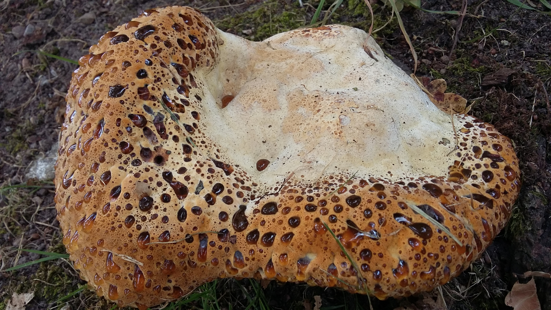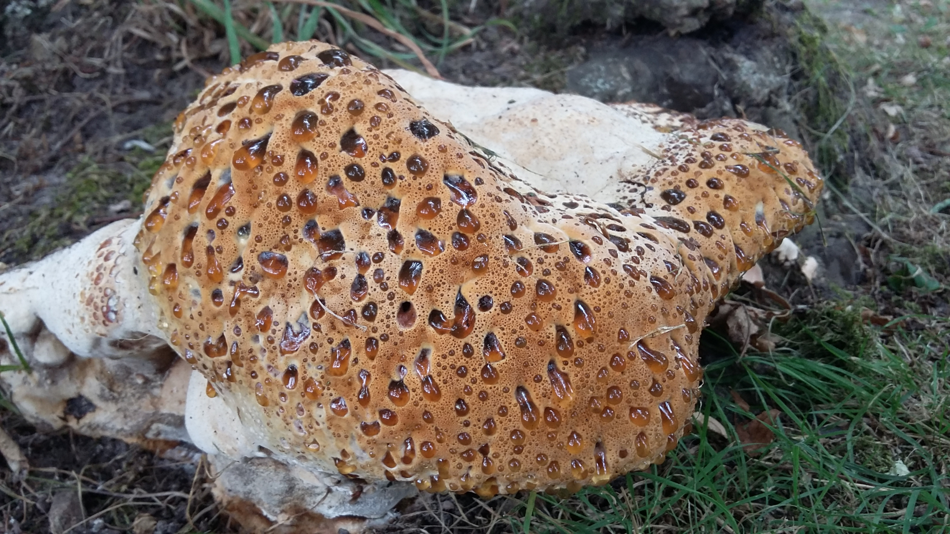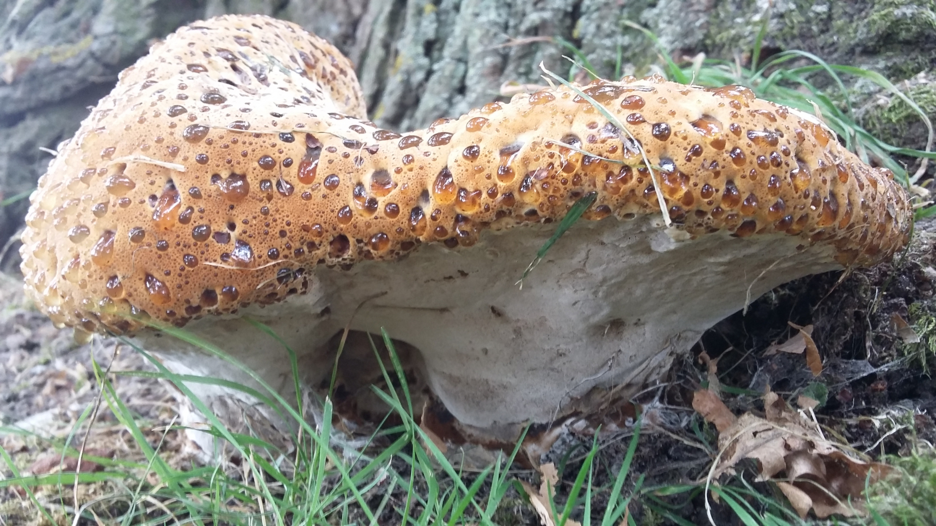 ich hab den Fund in einem anderen Thread schon mal erwähnt, weil ich den Einzelfruchtkörper 2017 fand und der Pilz seitdem keine Fruchtkörper mehr hervorgebracht hat. Er wuchs an einer recht vitalen Stieleiche in einer Höhe von ca. 1,8m.