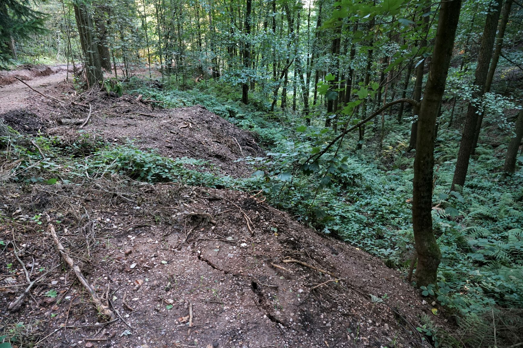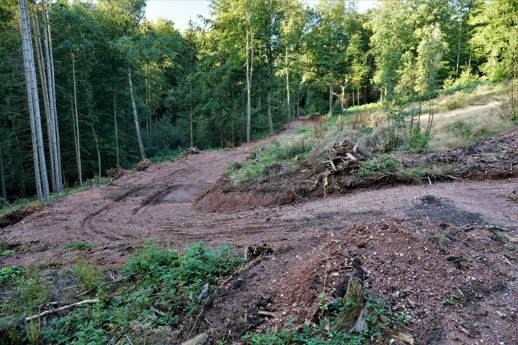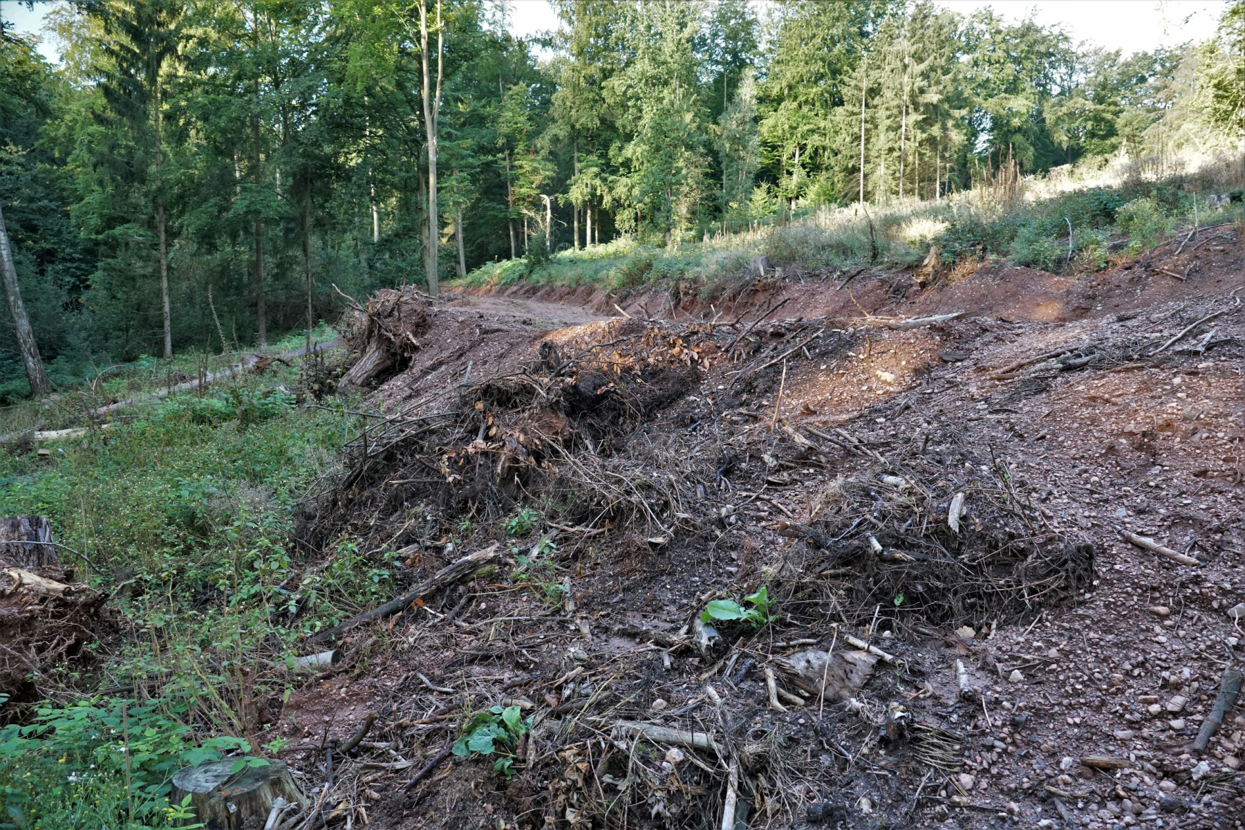 Immerhin haben sie noch einige Eschen stehen gelassen. Ein paar davon sehen noch vital aus, einige wurden schon deutlich von Hymenoscyphus fraxineus in Mitleidenschaft gezogen.