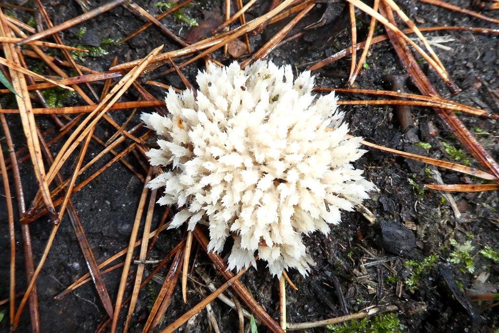 Die Kammkoralle (Clavulina coralloides = Clavulina cristata) bildet manchmal solche üppig wuscheligen Fruchtkörper mit reduziertem Strunk. Das wäre jedenfalls mein Gedanke bei dem Bild, die Option wäre ein Warzenpilz (Thelephora spec.), aber das passt meiner Ansicht nach nicht wirklich zusammen. Die einzige sinnvolle Option wäre da Thelephora penicillata, und die breitet sich etwas flacher aus und die Äste werden rasch von der Basis her bräunlich bis schwärzlich. Zudem wäre das eine Art auf anderen Böden, die braucht Laubbäume zur Mykorrhizabildung und bevorzugt eher neutrale bis basische, schwerere Böden.