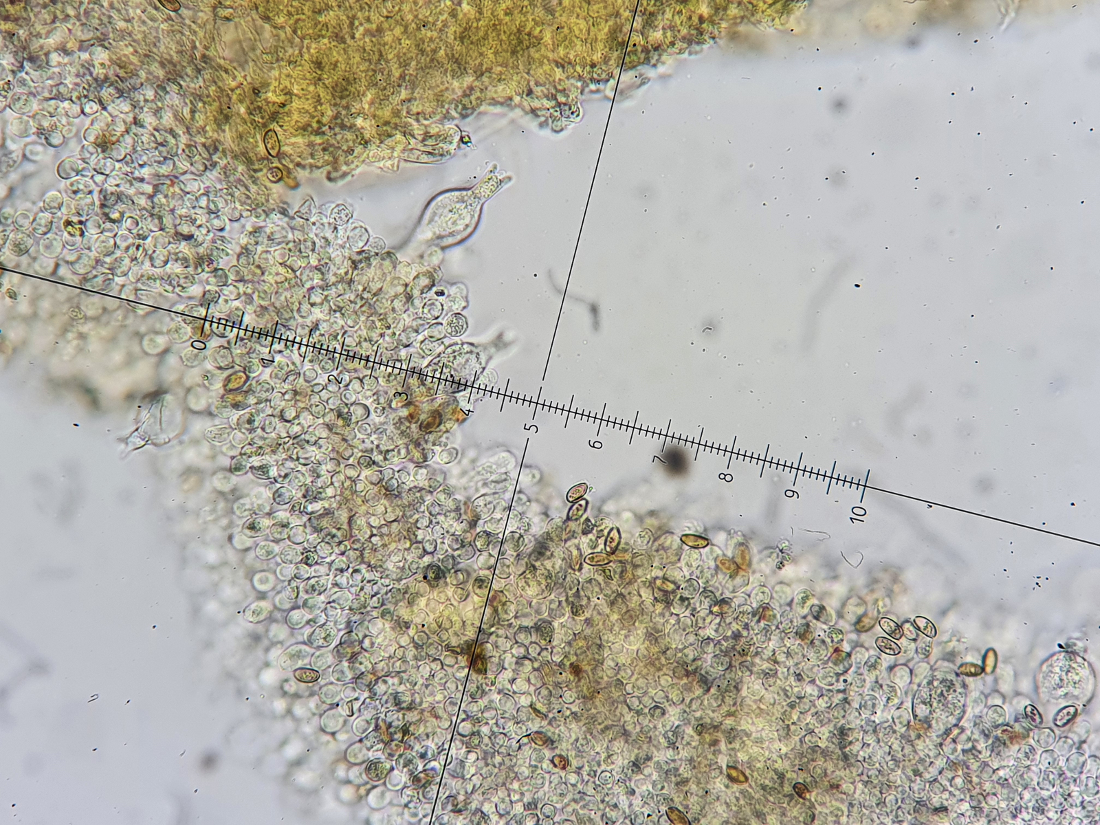 Sporen passen ebenso. Ellipsoid, dickwandig, 9x5ym mit Keimporus.