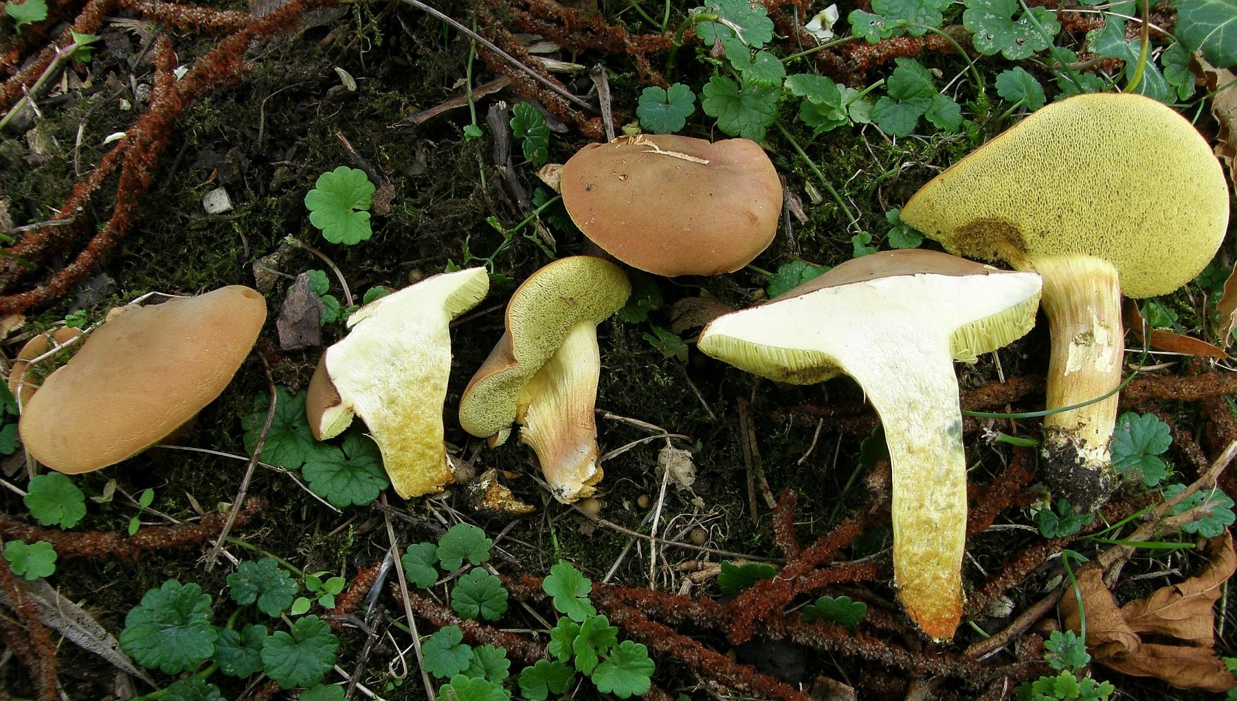 Dein Fund ist durchaus auch komisch, aber dem fehlt ja das leuchtend gelbe Fleisch unten in der Stielbasis und im Hut. Zudem blaut er ja vor allem an den Röhren / Poren, nicht aber im Hutfleisch. Ich würde mal vermuten, daß das was Anderes ist, könnte dem jetzt aber auch auf die Schnelle keinen Namen geben.
