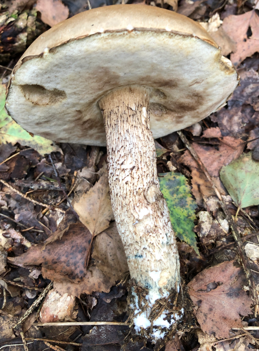 Wenn das hier kein Pappelraufuß, sondern tatsächlich eine Art aus der Sektion Scabra (Birkenpilze iwS) ist, dann glaube ich diesen Pilz sogar zu kennen. Also ein "Birkenpilz" mit blaufleckender Stielbasis, aber hellem, +/- einheitlich gefärbtem Hut (ähnlich L. scabrum, aber nicht L. variicolor).
