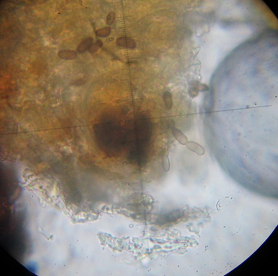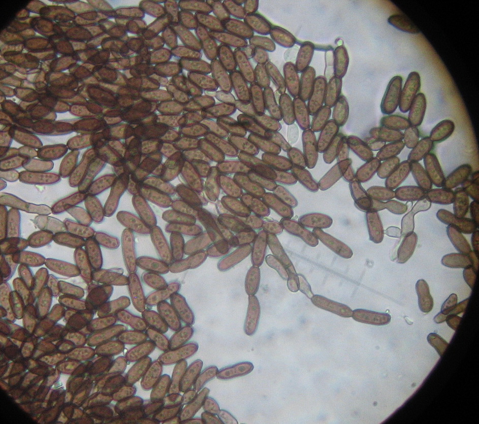 Die Konidien vom Brandkrustenpilz werden, soweit ich weiß, nicht in Ketten gebildet und sind hyalin,