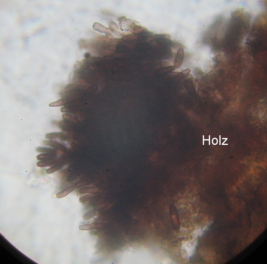 Im und auf dem Holz selber sind einige Pyreno´s vorhanden, doch hab ich keine Sporen/ Anhaltspunkte zur Bestimmung gefunden.