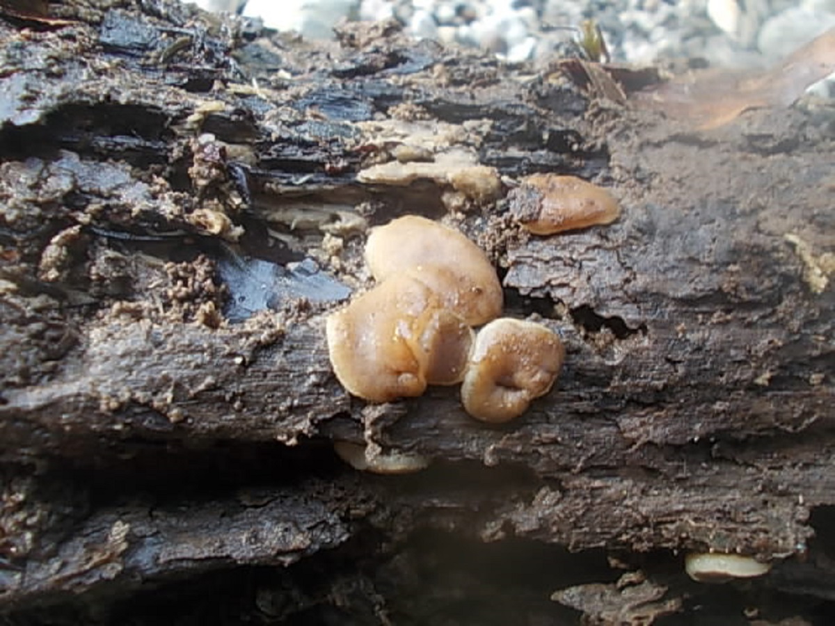 Ebenfalls am ersten Tag fanden wir einen Schlauchpilz, von dem ich bisher nicht mal den Namen gehört hatte. Im Feld wurde schon an Becherling (Peziza) gezweifelt und es fiel noch der Gattungsname Pachyella. Die mikroskopische Untersuchung und vollständig jodnegative Asci führten jedoch zu