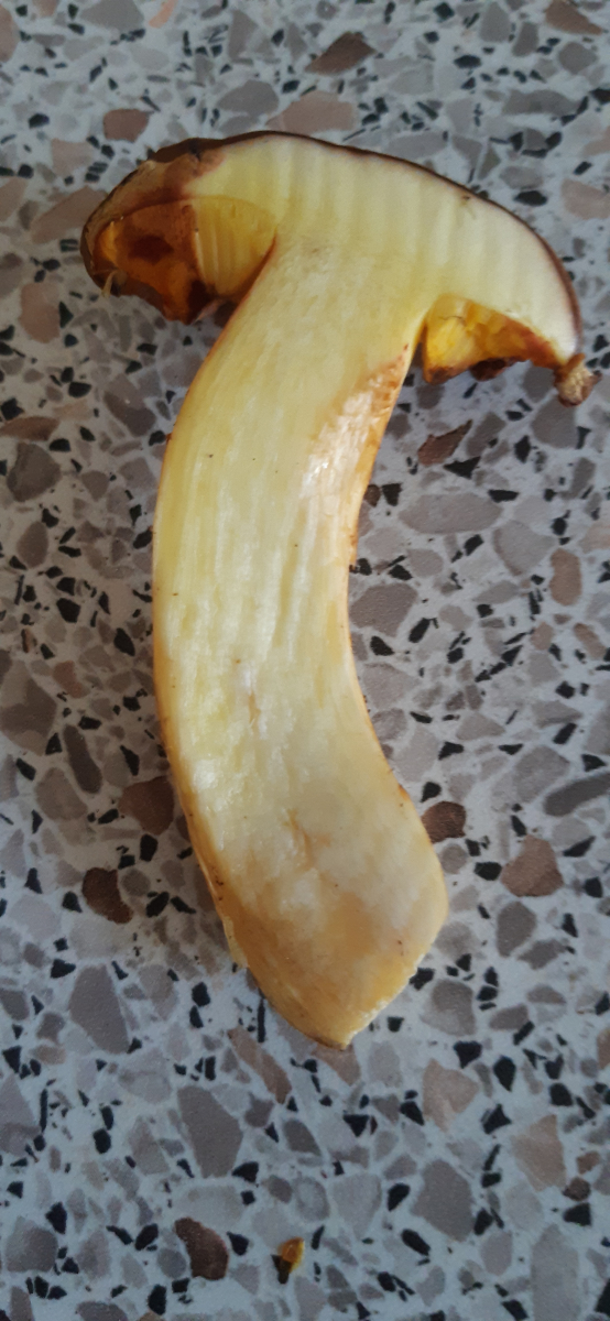 Selbstverständlich bedankte ich mich trotzdem bei ihnen und erklärte, dass dieser alte Gelbporige Raufuß (Edit: wohl auch eher Blasshütiger Röhrling) nicht mehr zum Verzehr geeignet ist.