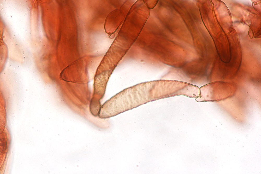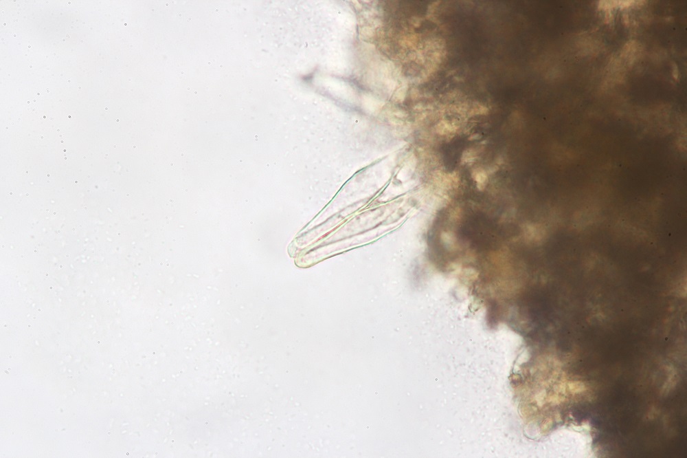 Auch bei diesem Fund dachte ich an zuerst an eine Flammulaster. Später fiel mir ein, dass es noch die Inocybe gab, wozu dann auch die Zystiden gepasst haben.