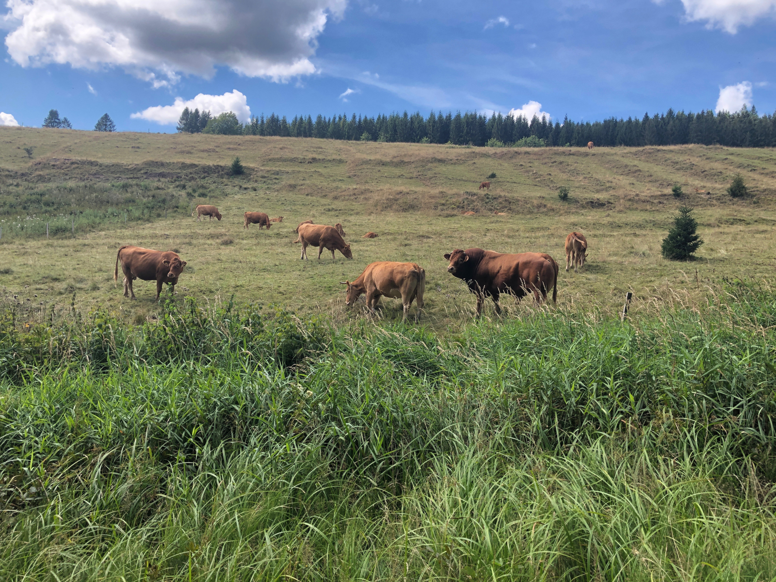 14 Ein glücklicher Bulle nebst Familie. Aber gut zu sehen ist, dass der Regen in letzter Minute kam. Die Weide gab schon nicht mehr viel her.n