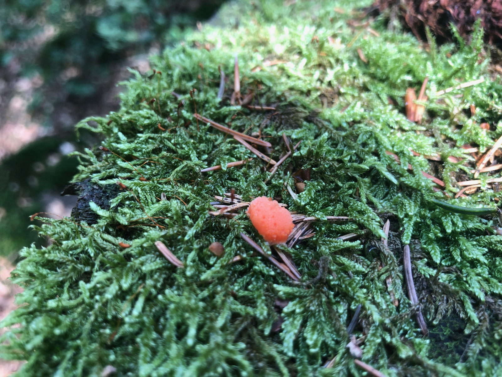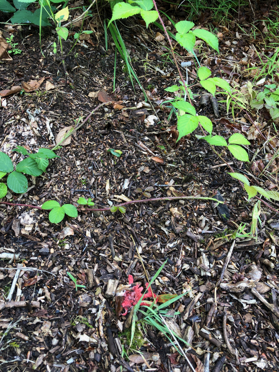 Zu den Schleimern: der erste lachsfarbige ist Tubifera ferruginosa, der "Fischeierschleimpilz", der gelbe ist Arcyria obvelata, den Nickende Kelchstäubling. Dieser ist immer wieder hüsch anzusehen.
