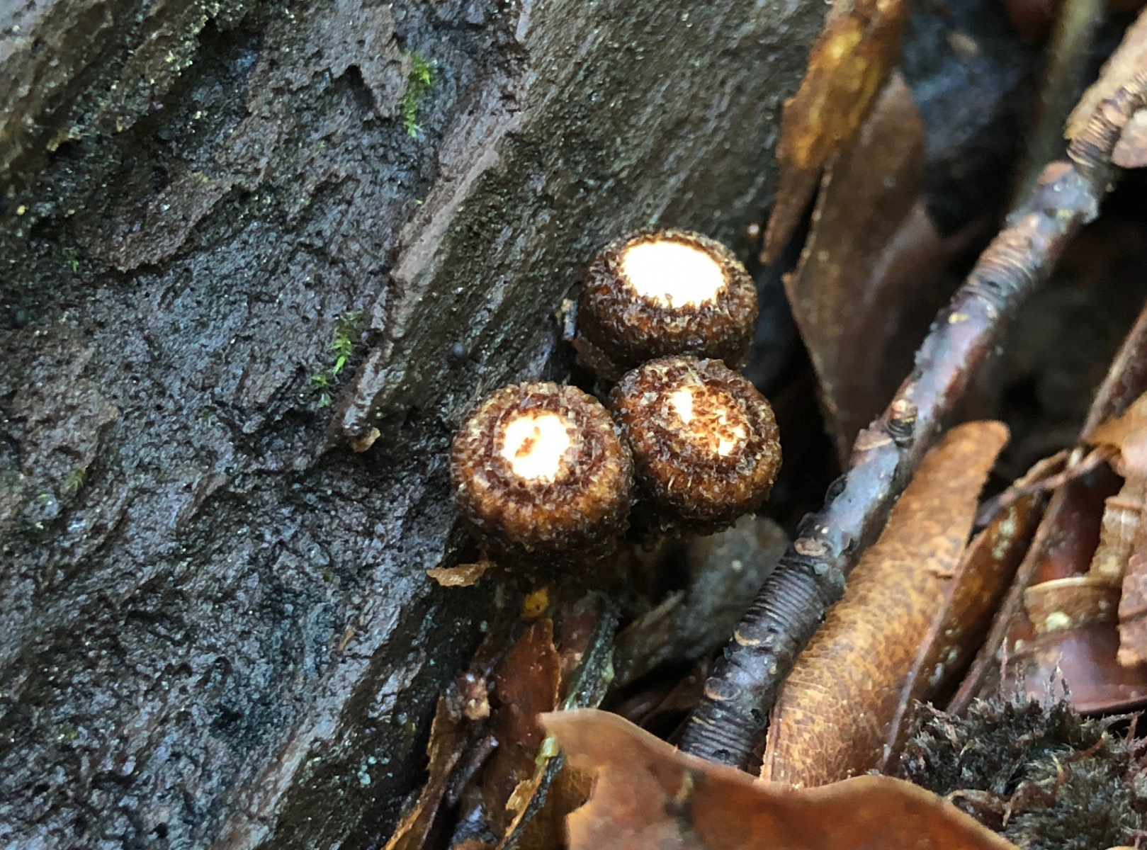 24 Und entdeckt einen Pilzknubbel, der vielleicht einmal ein Rotrandiger Baumschwamm werden wird.