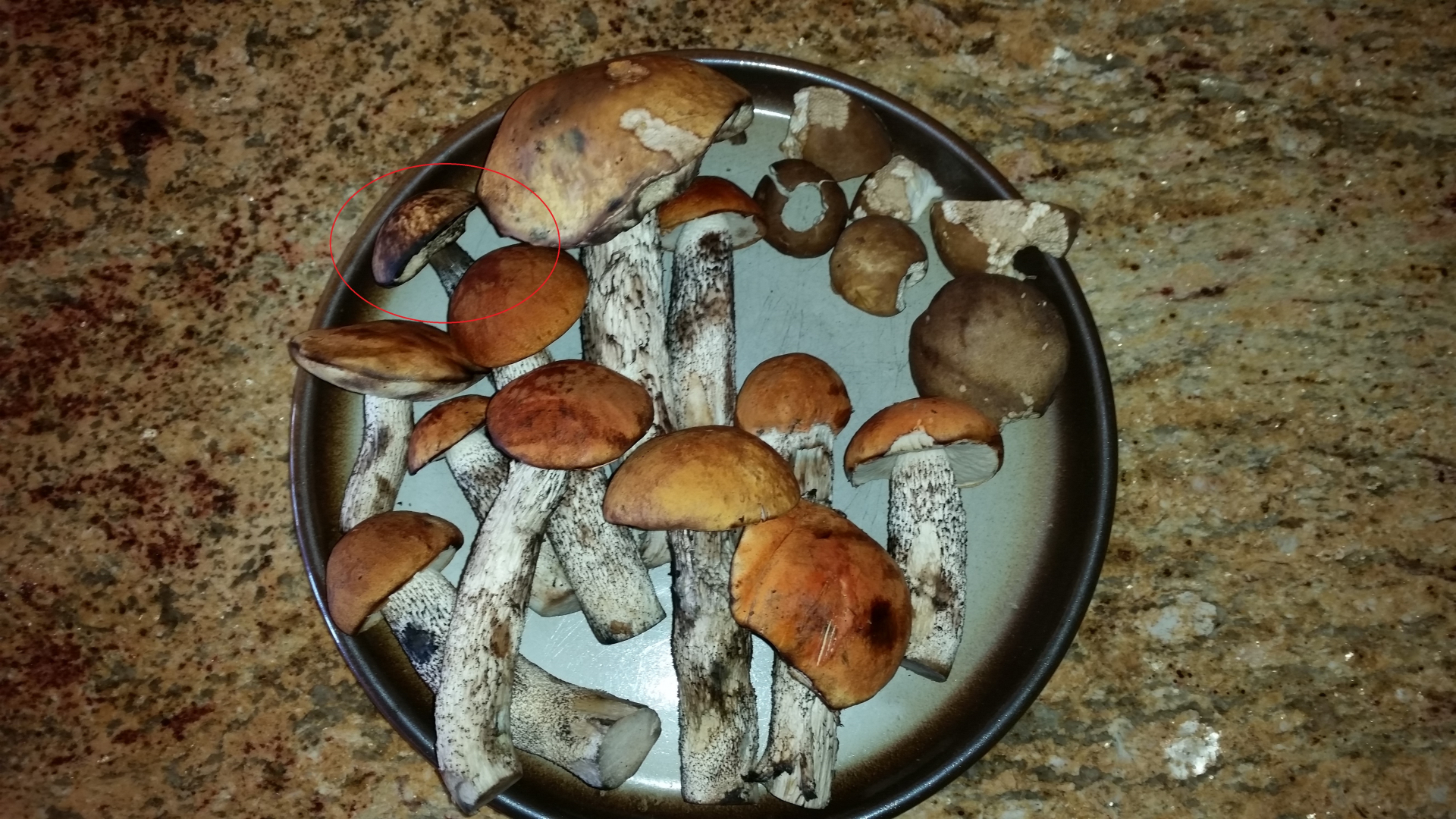 Heute wieder eine kleine Sammelrunde gestartet und verschiedene Rotkappen und ein paar Kiefernsteinpilze gefunden.
