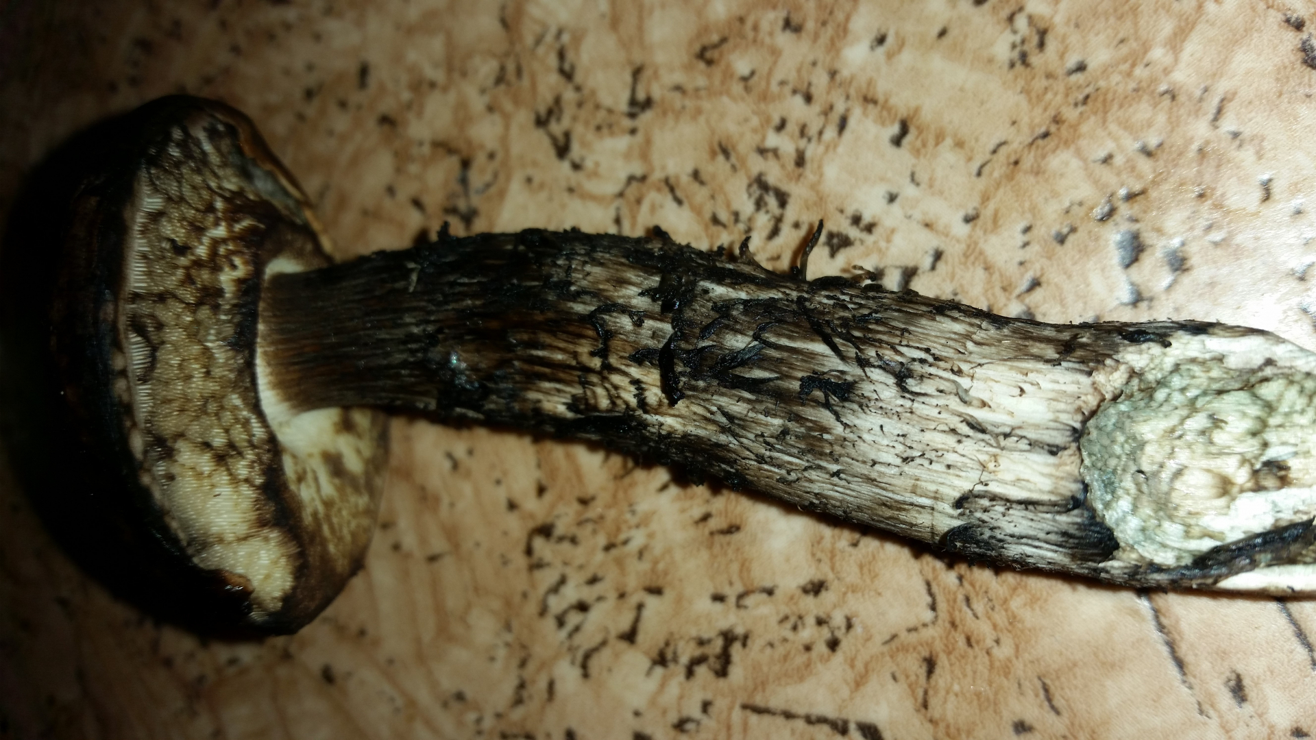 Ich denke, mit Hainbuchenröhrling (Leccinellum pseudoscabrum s.l.) liegst du schon richtig bei dem finster verfärbenden Gesellen.