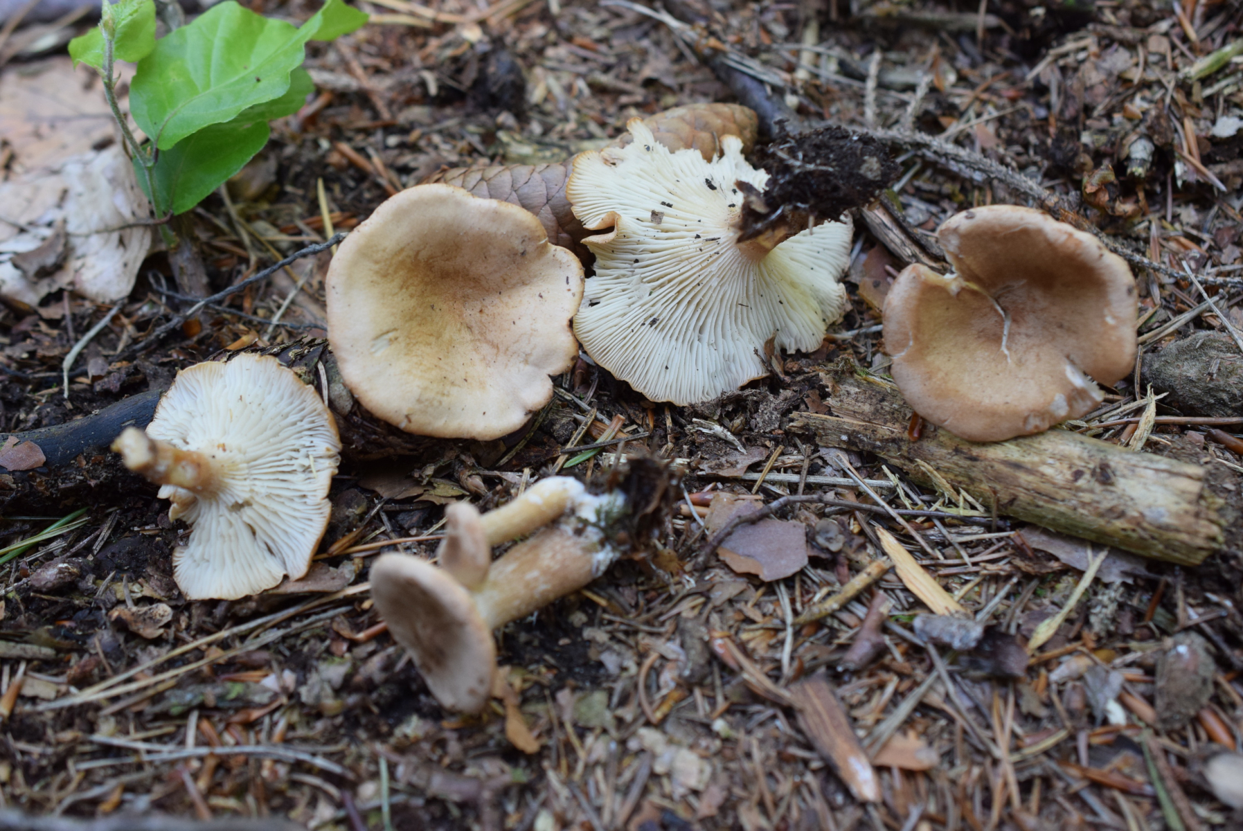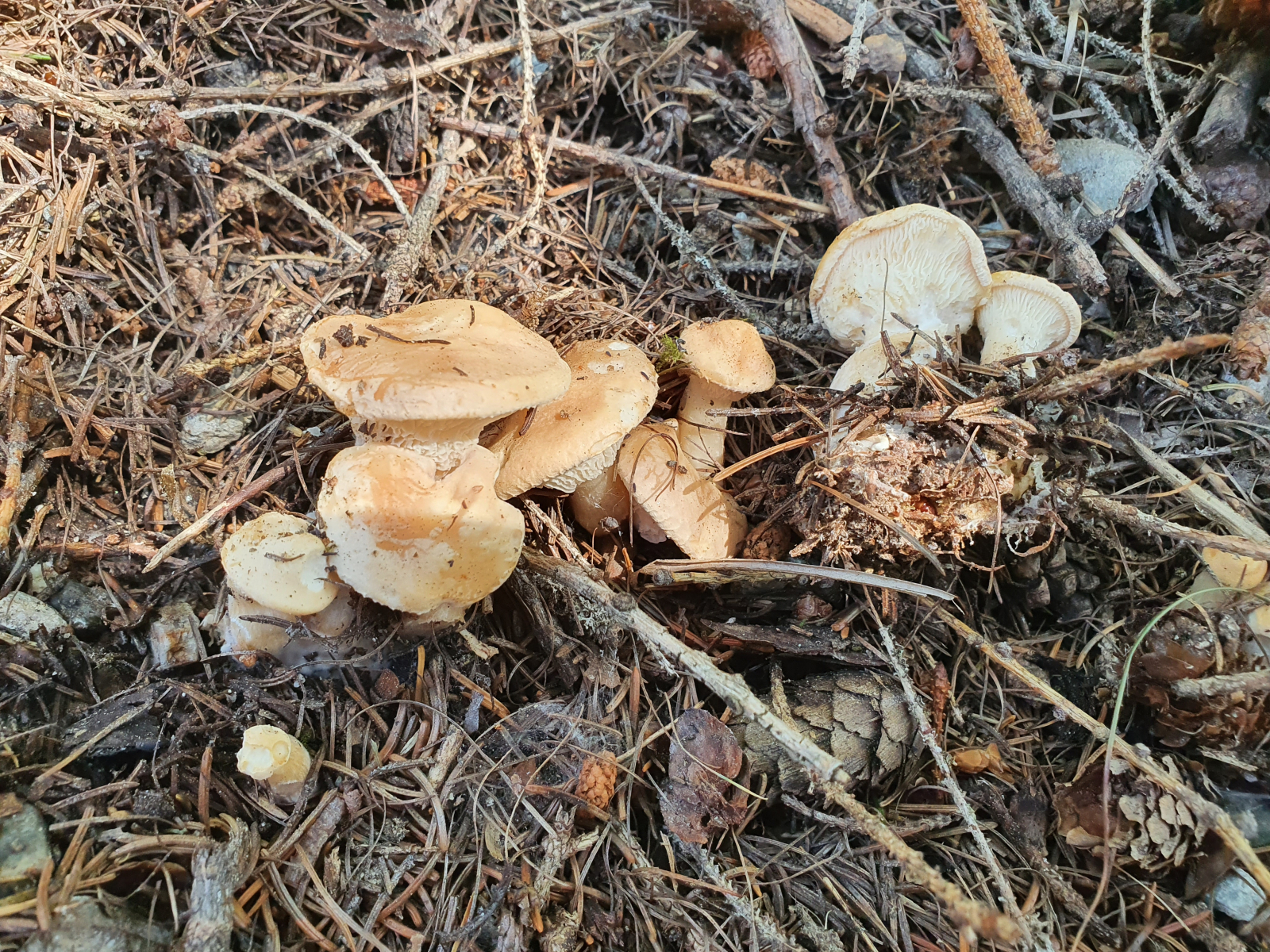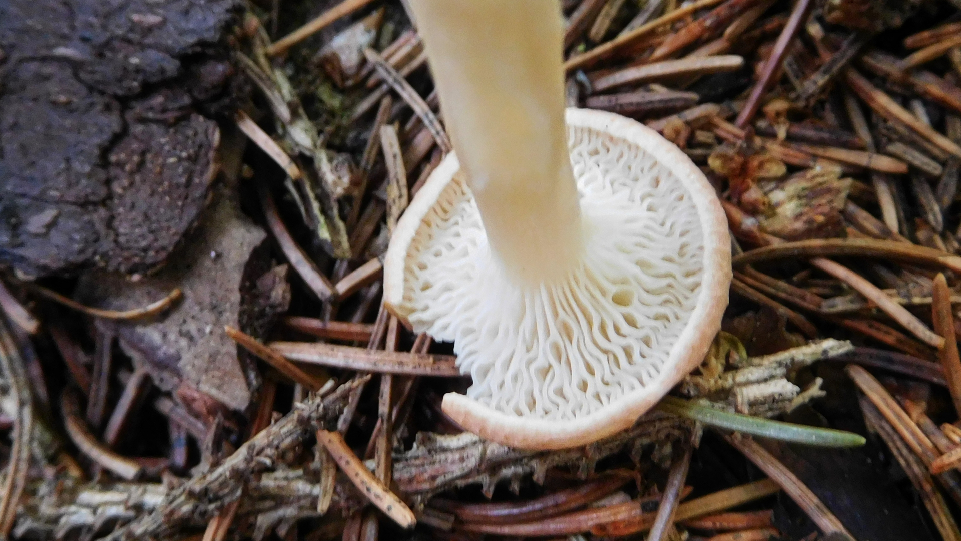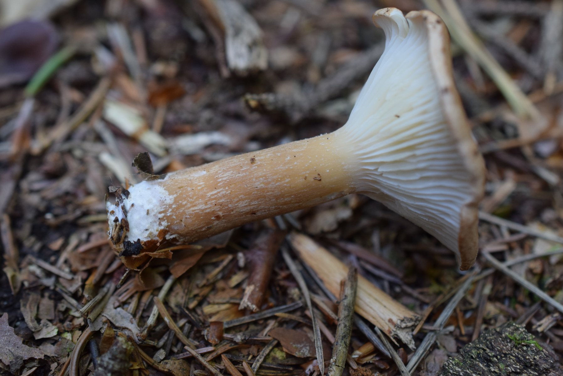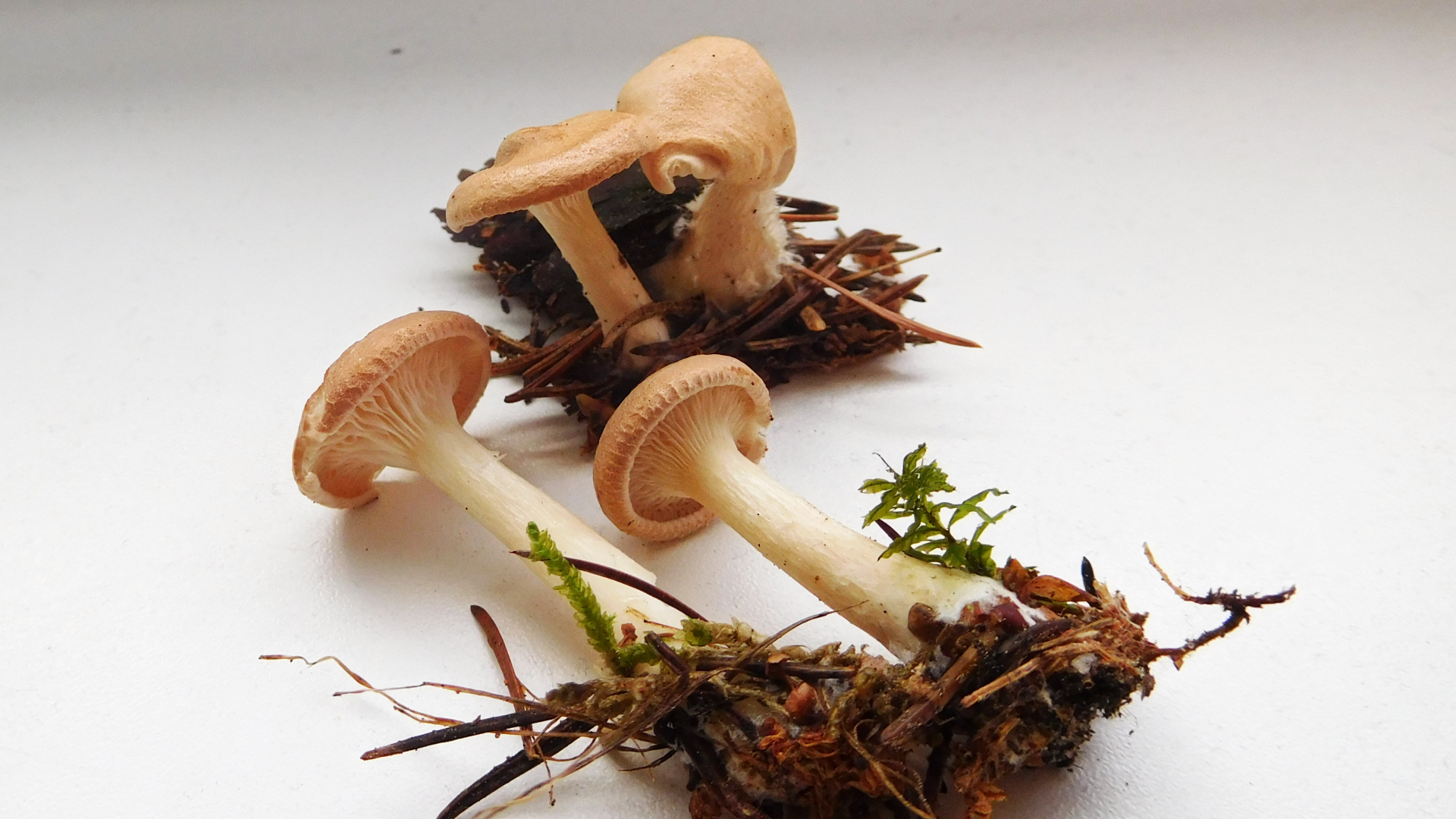 Heute war ich mal wieder im pilzfreien Wald. Der fast einzige Pilz, der war in der Nadelstreu gewachsen. Ganz klein (ca. 2 - 3 cm Höhe). Der Pilz ist erstaunlich fest und der Stiel faserig. Der Pilz wird auch nicht größer. Ich beobachte diese Art schon jahrelang. Der Pilz muß aber auch mal einen Namen bekommen. Auch wenn nur die Gattung möglich wäre.