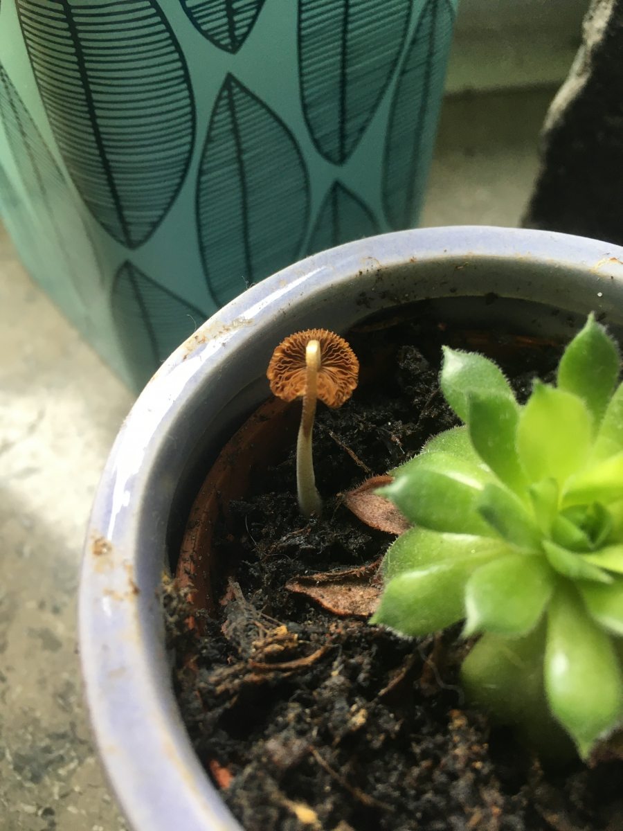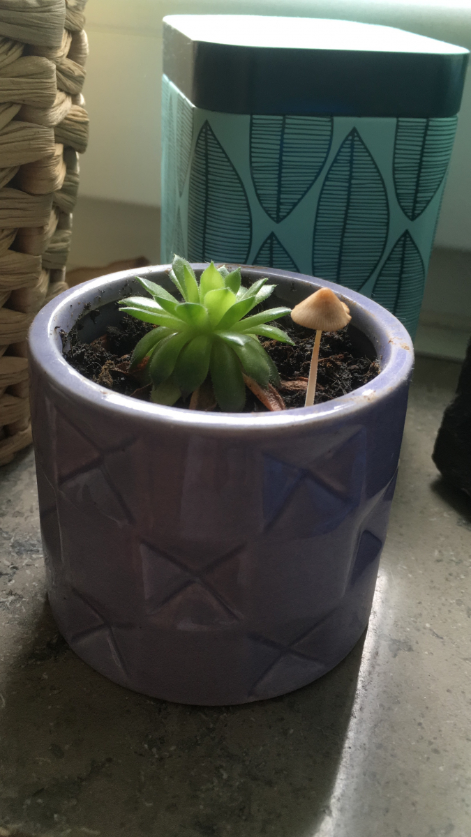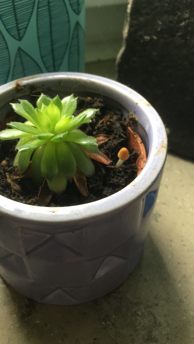 Dieser Pilz ist in einem meiner kleinen Pflanztöpfe gewachsen, das erste Bild ist von gestern und das zweite von heute