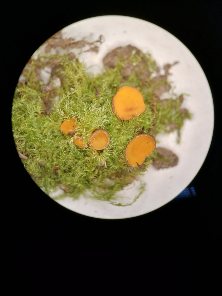 Die Apothezien sind gelb bis orange, ca. 5mm bis 20mm gross und haben einen kurzen Stiel. Rand und Unterseite sind bräunlich mit braunen Punkten. Haare hab ich keine gefunden. Asci sind inamyloid, die Sporen glatt und hyalin. Ist es okay wenn ich wenn ich einfach einen Haufen Bilder anhänge statt viel zu schreiben? Ich bin ein kompletter Amateur und beherrsche die Fachsprache noch nicht so ganz. ![]()
