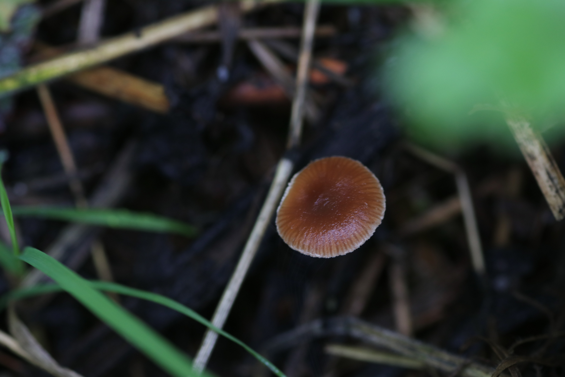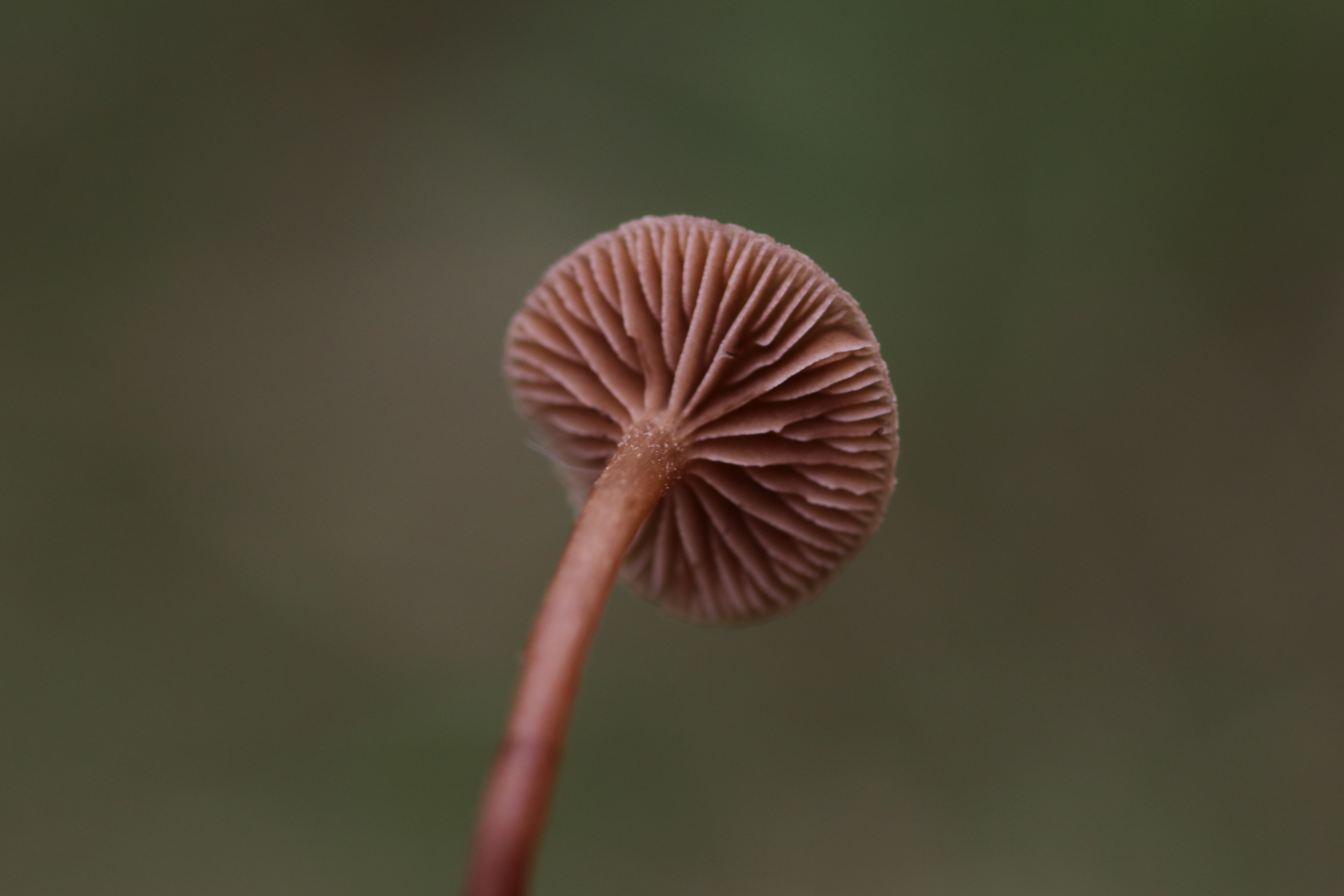 gestern war ich in einem kleinen Bruchwaldgebiet unterwegs und an seinem Rand habe ich auf dem Boden zwischen Laubästchen folgenden Pilz gefunden. Vom Aussehen dachte ich an den trockenen Kahlkopf (Deconica montana), doch passt das Habitat nicht wirklich. Die Huthaut war etwas.klebrig.