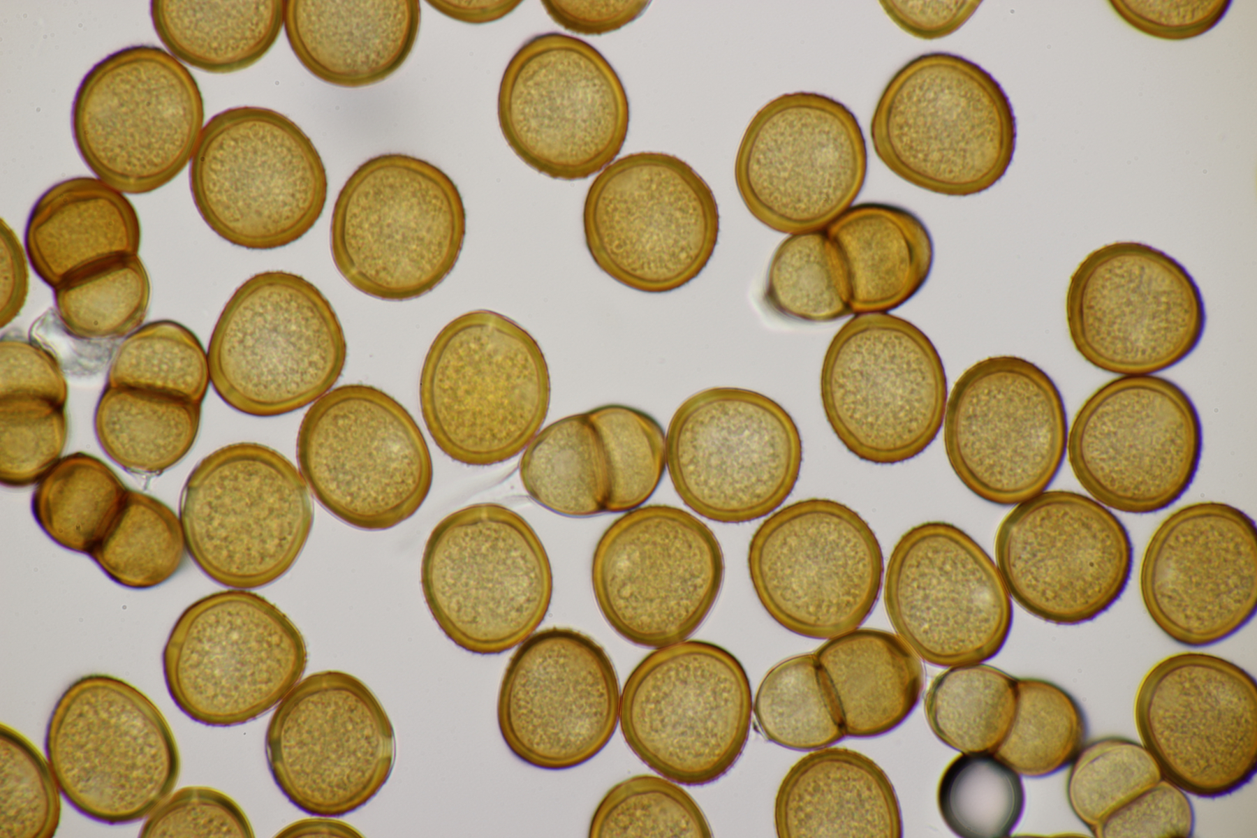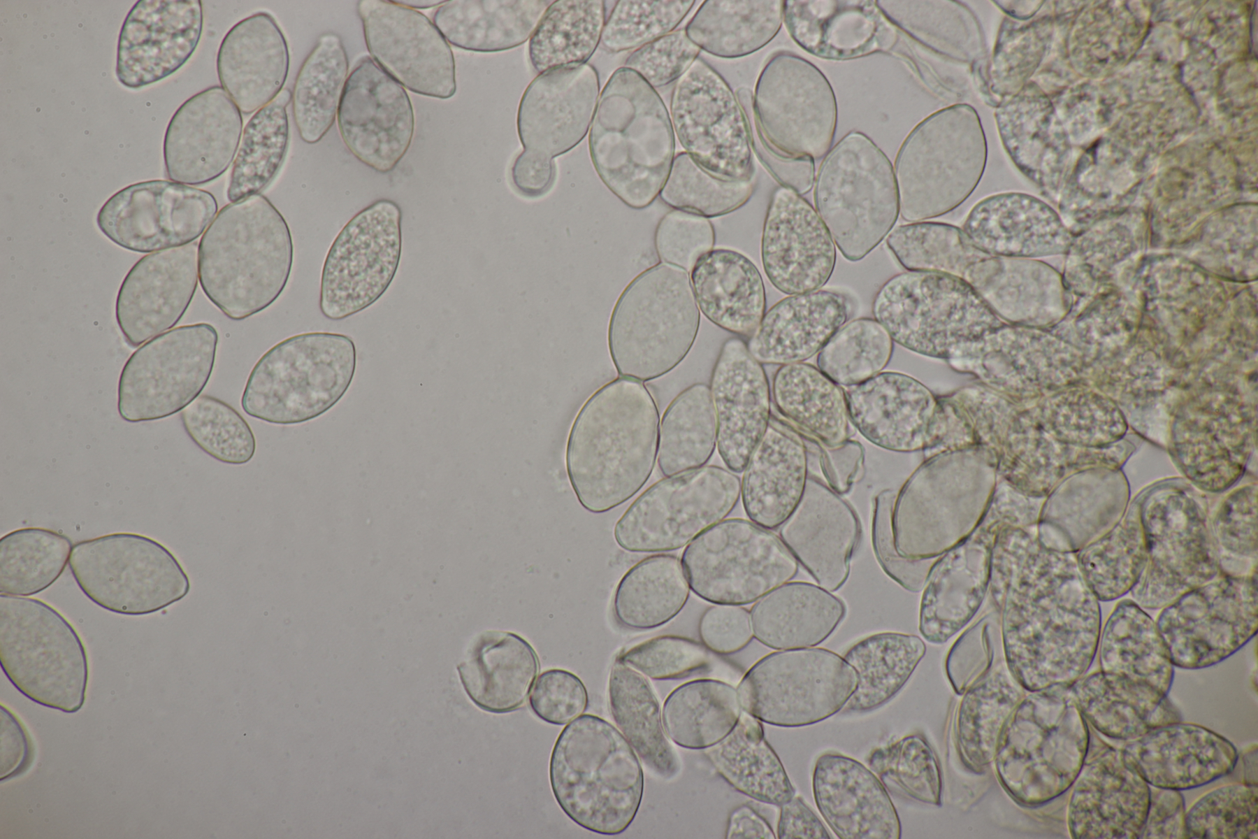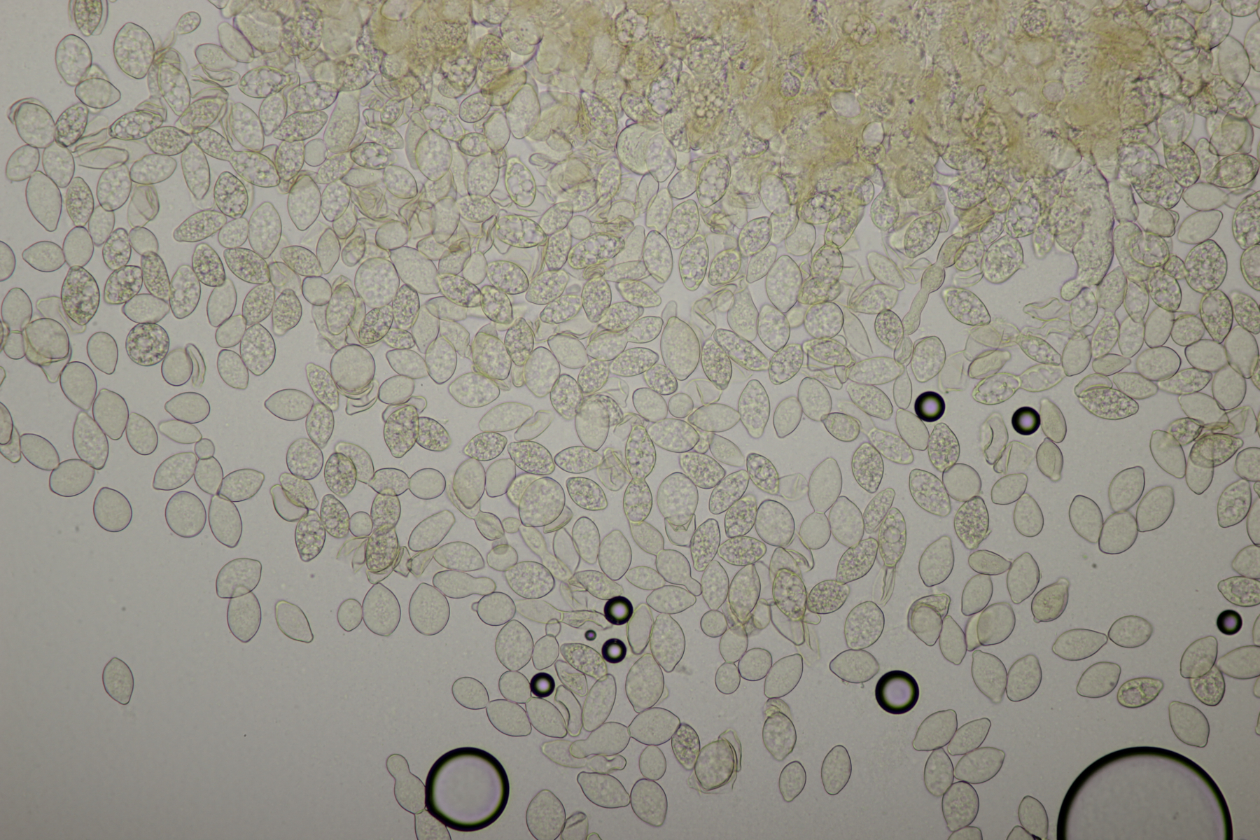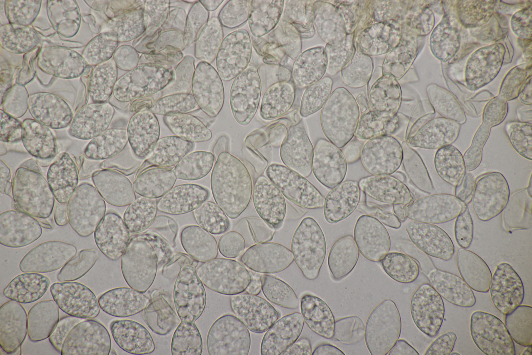 1. Champignons sind ja immer so eine Sache, aber den hier würde ich für Agaricus campestris, Sporengröße (7.4+-0.5) µm x (4.8+-0.4) µm, Q=1.6+-0.1, keine Gelbfärbung, Geruch unauffällig