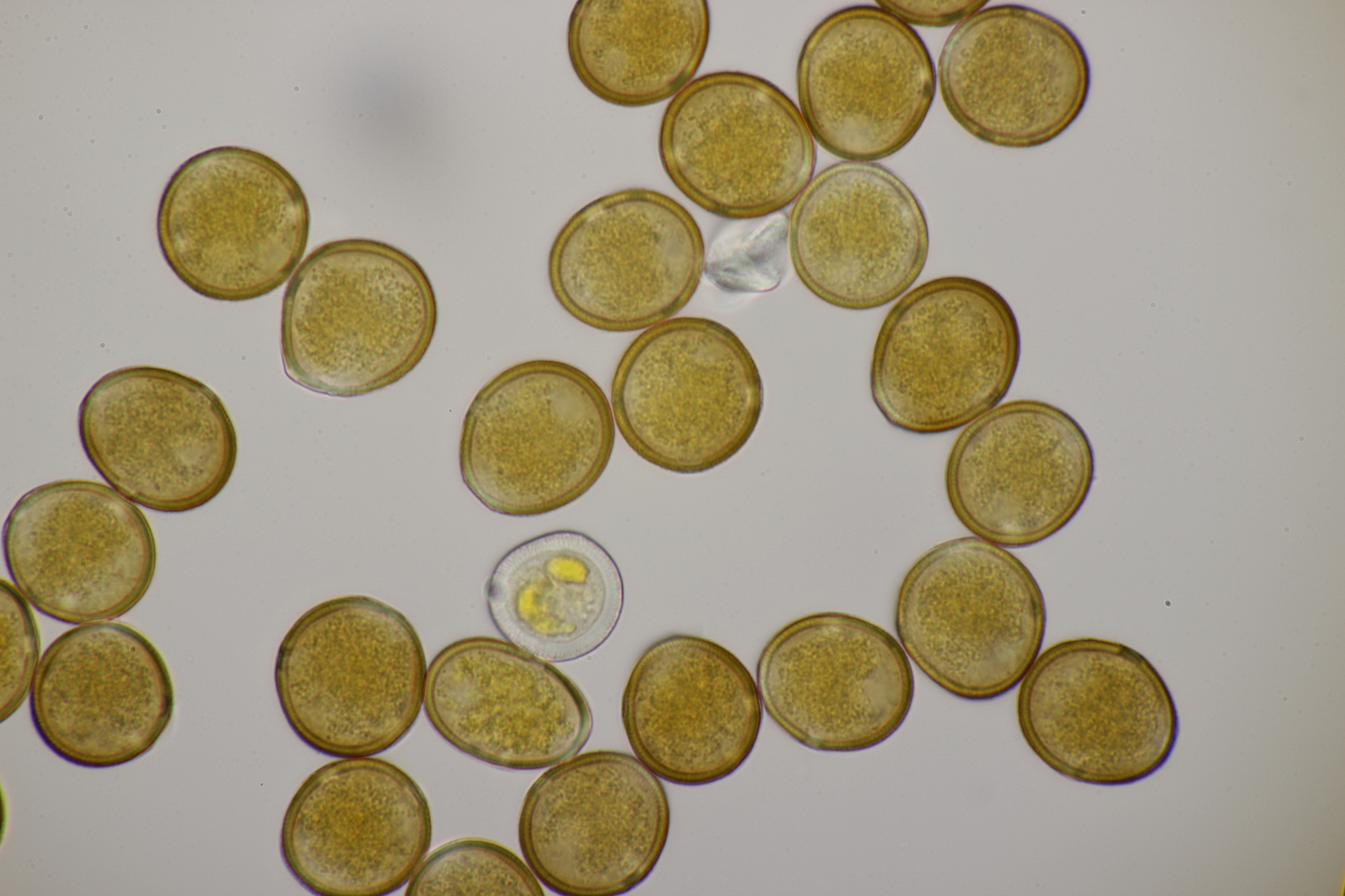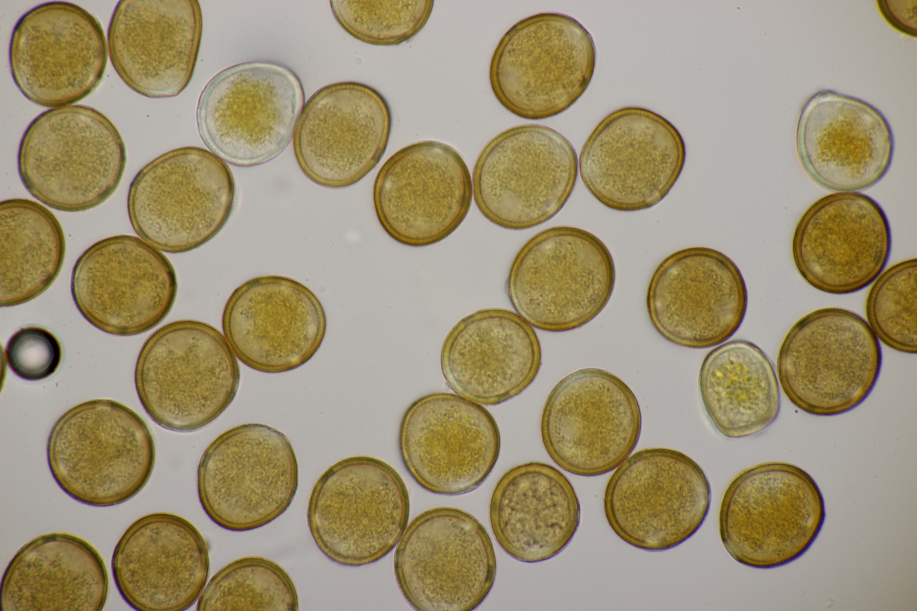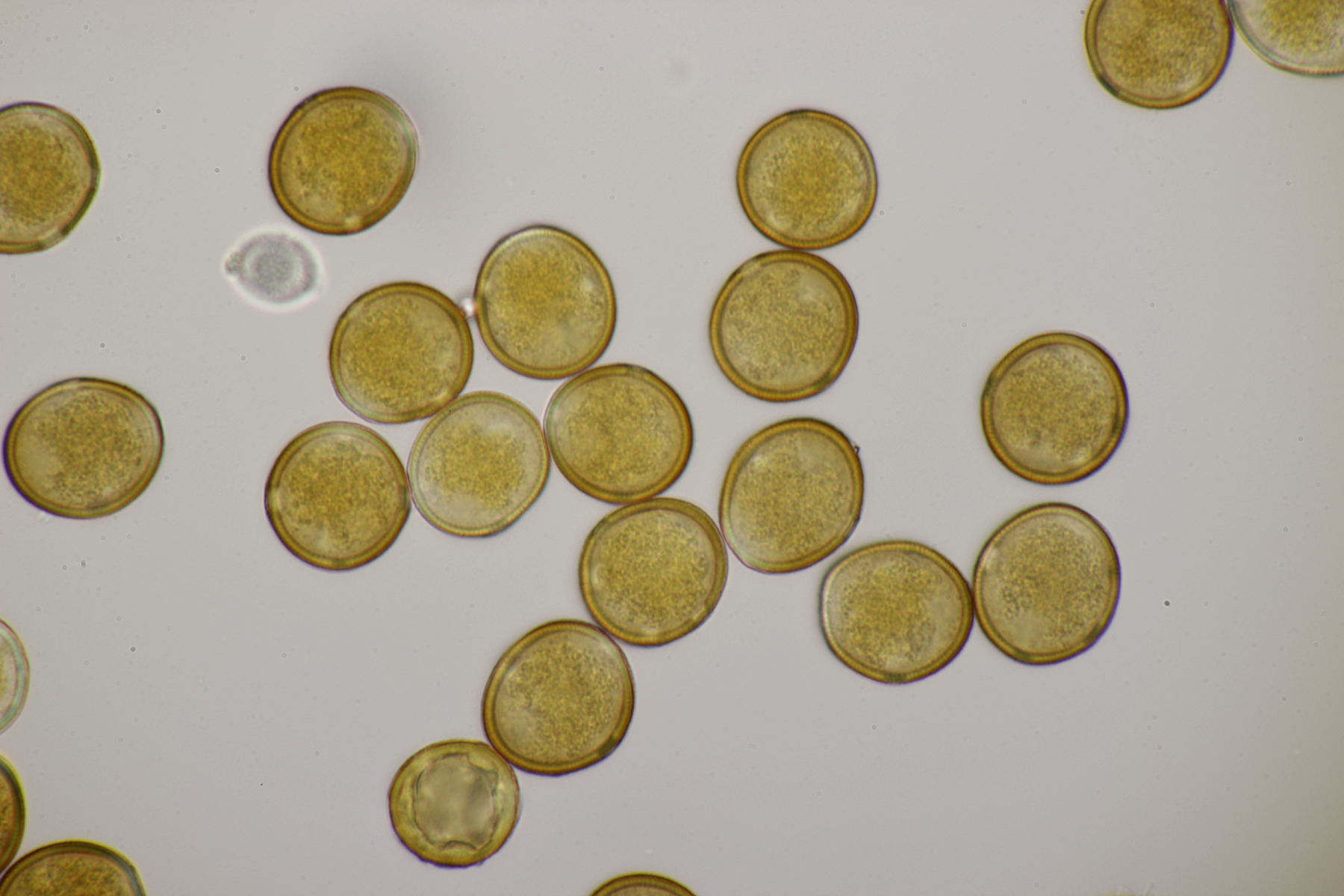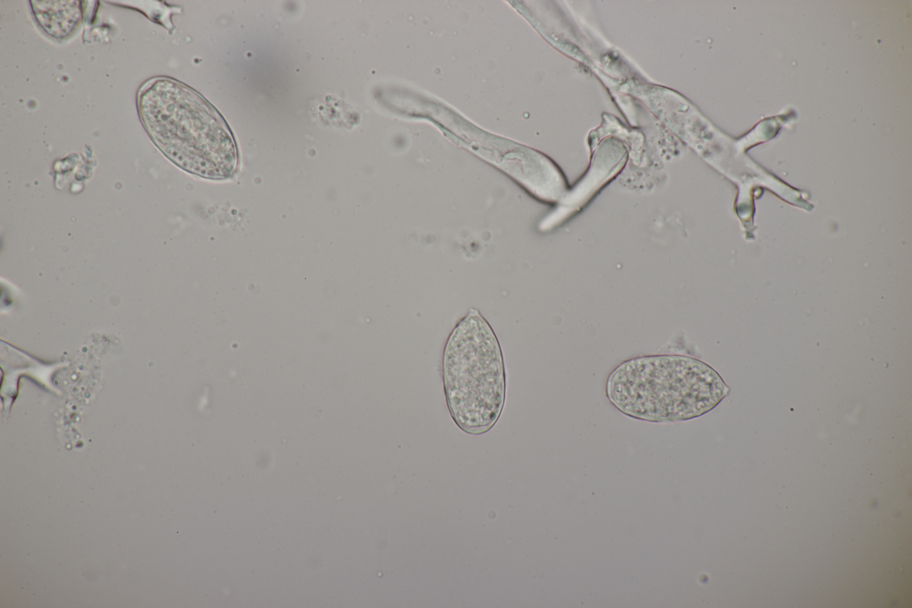 1. Champignons sind ja immer so eine Sache, aber den hier würde ich für Agaricus campestris, Sporengröße (7.4+-0.5) µm x (4.8+-0.4) µm, Q=1.6+-0.1, keine Gelbfärbung, Geruch unauffällig