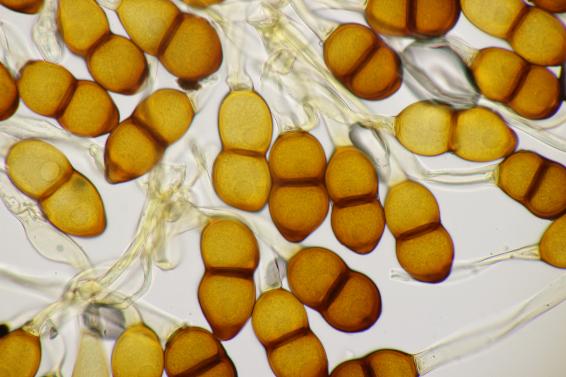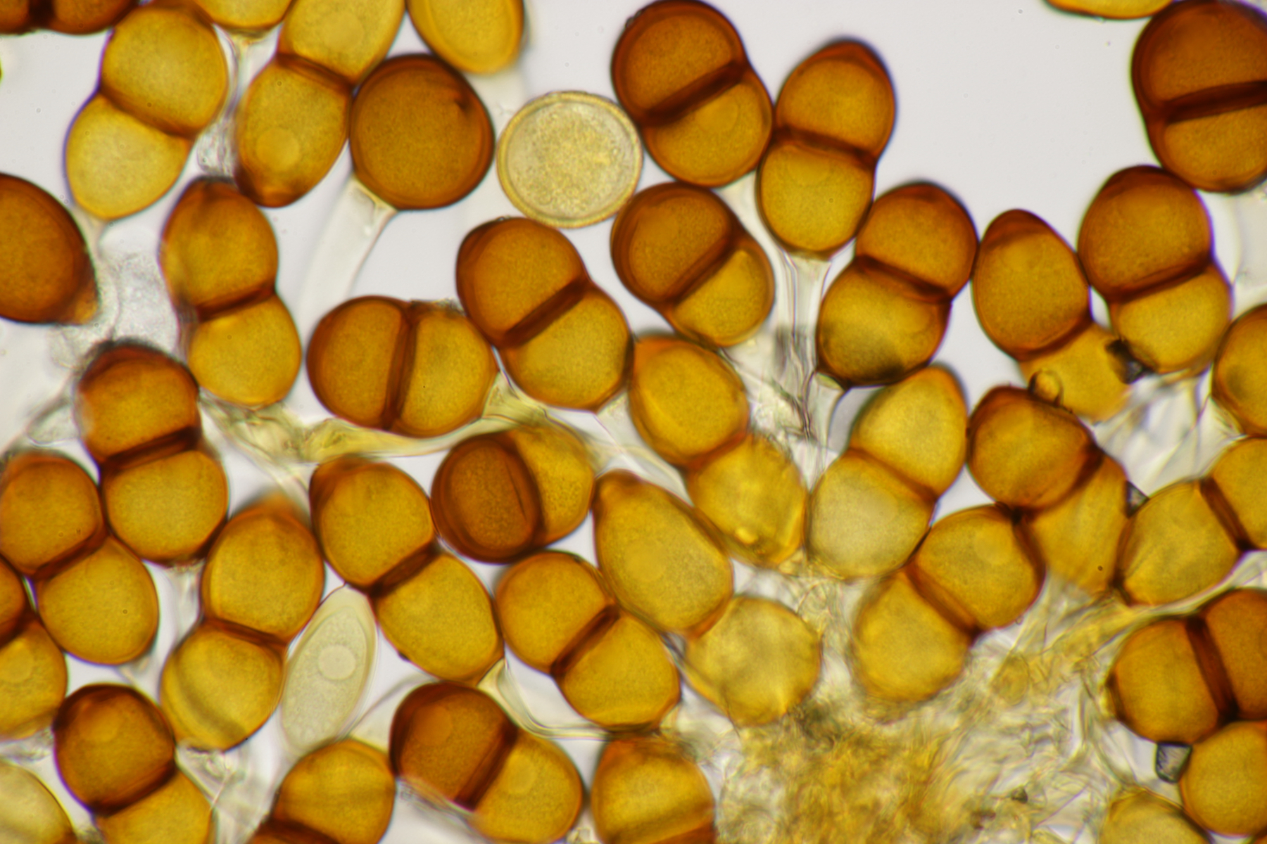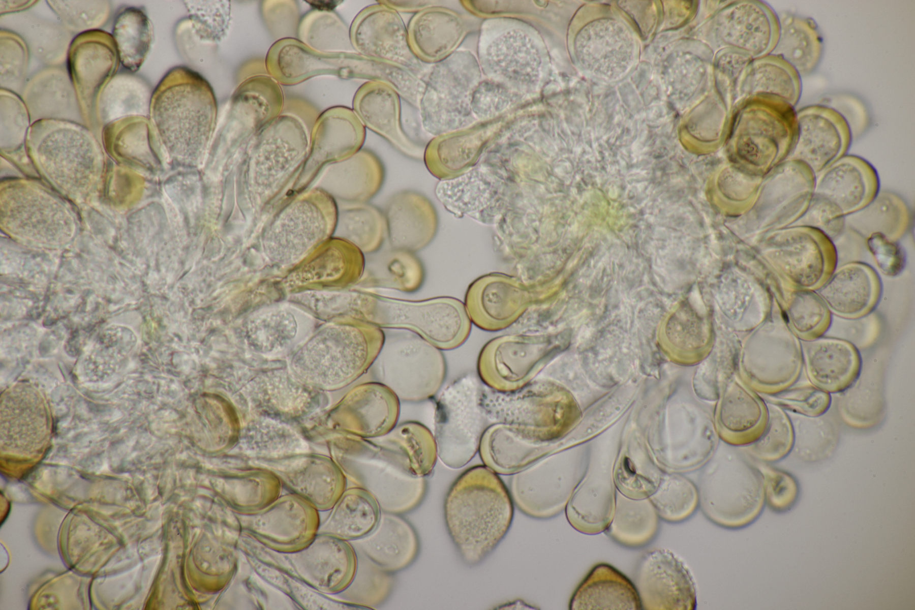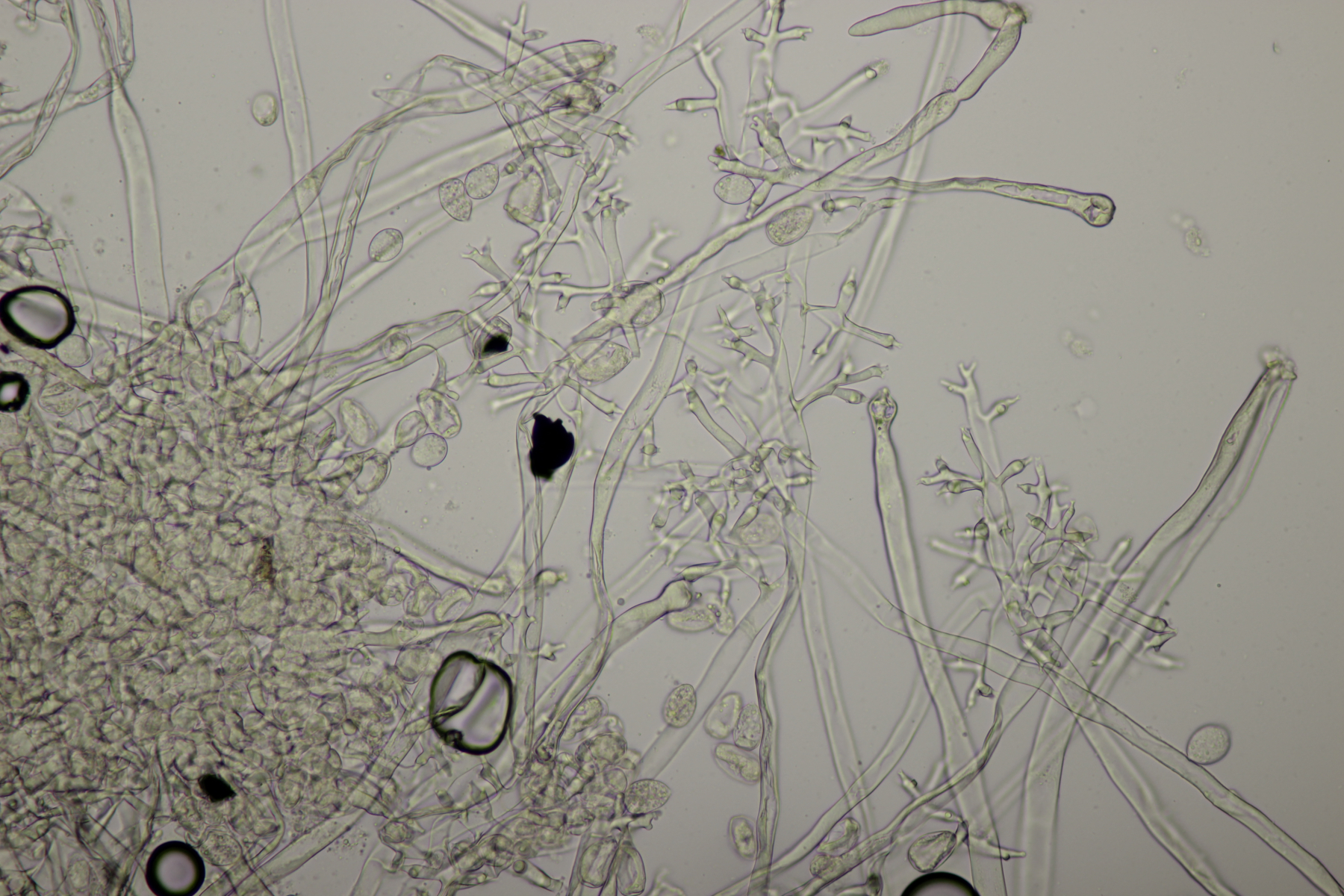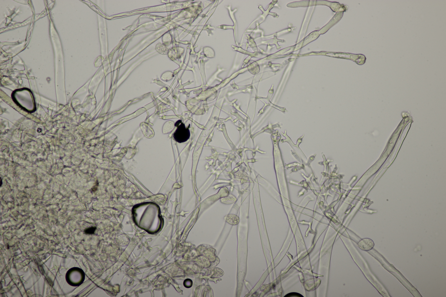 3. Podosphaera dipsacacearum ex Dipsacus fullonum, Konidien mit Fibrosinkörpern