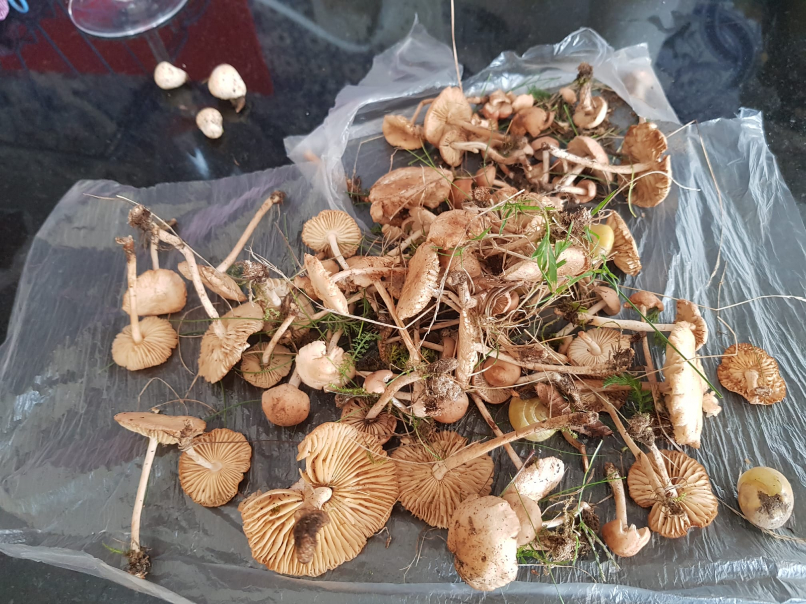 bei uns hinterm Haus wachsen immer wieder mal nach Regenschauern Nelkenschwindlinge. Ich habe da bislang nur sehr zögerlich einzelne besonders schön aussehende Exemplare mitgenommen und habe die mal provisorisch getrocknet. Meine 5-jährige Tochter, die zunehmend meinen Pilzenthusiasmus teilt bringt jetzt ab und zu selbstständig welche mit wenn sie draussen spielt. Jetzt hat sie heute eine riesen Tüte voll mitgebracht und ich würde die ungern einfach wegtun sondern gern einige zumindest behalten. Was ich aber ziemlich schwierig finde ist, das Alter von diesen Pilzen zu beurteilen, da die ja vertrocknen und dann wieder aufquellen können. Hat da vielleicht jemand einen Tipp? Ich würde sonst vielleicht mal die kleineren, ohne Risse nehmen und ein bisschen putzen.