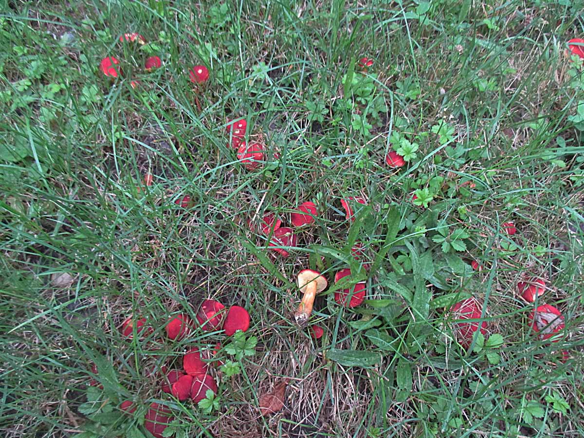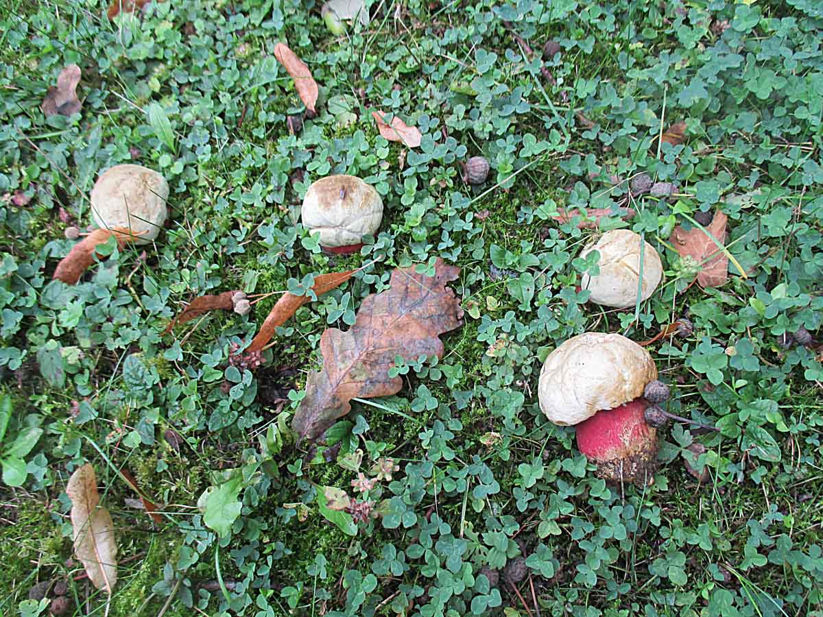 Bei denen hier dachte ich von weiten erst an Saftlinge aber es waren Blutrote Röhrlinge (H. rubellus). Schön sehen die in diesem Alter aber wirklich aus.