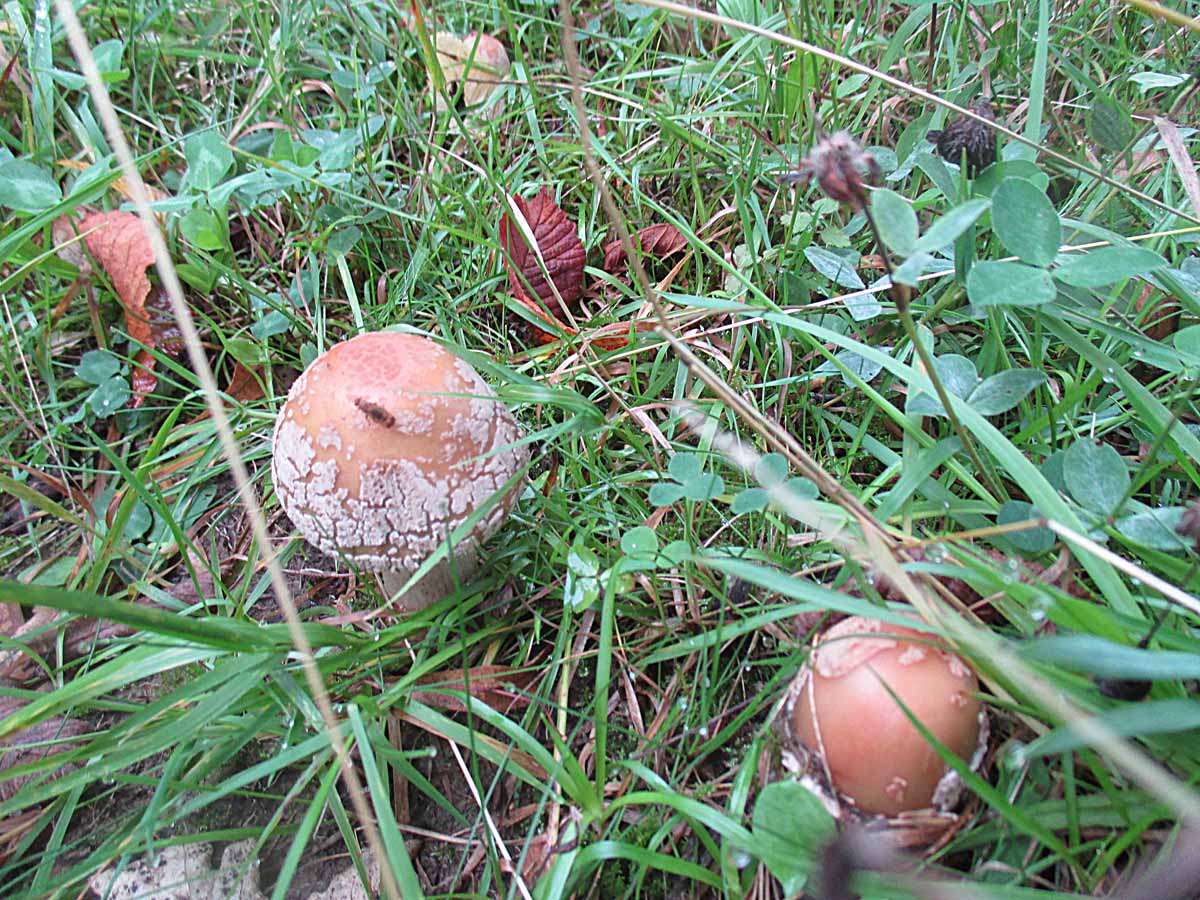 Ebenso nach langer Zeit ein paar Perlpilze (A. rubescens).