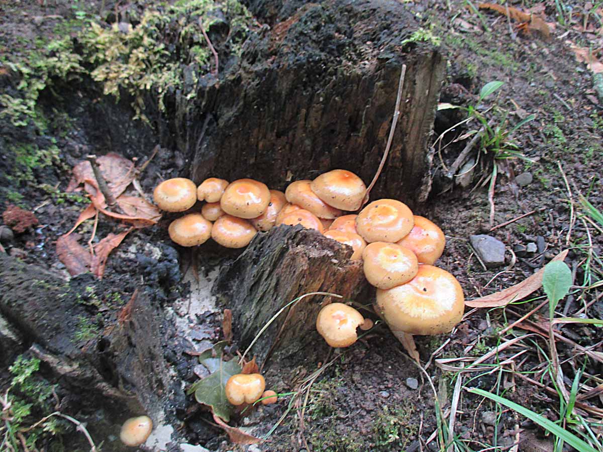 Mehlräslinge (C. prunulus), Stockschwämmchen (K. mutabilis) und Tränende Saumpilze (L. lacrymabunda) waren auch vorhanden.