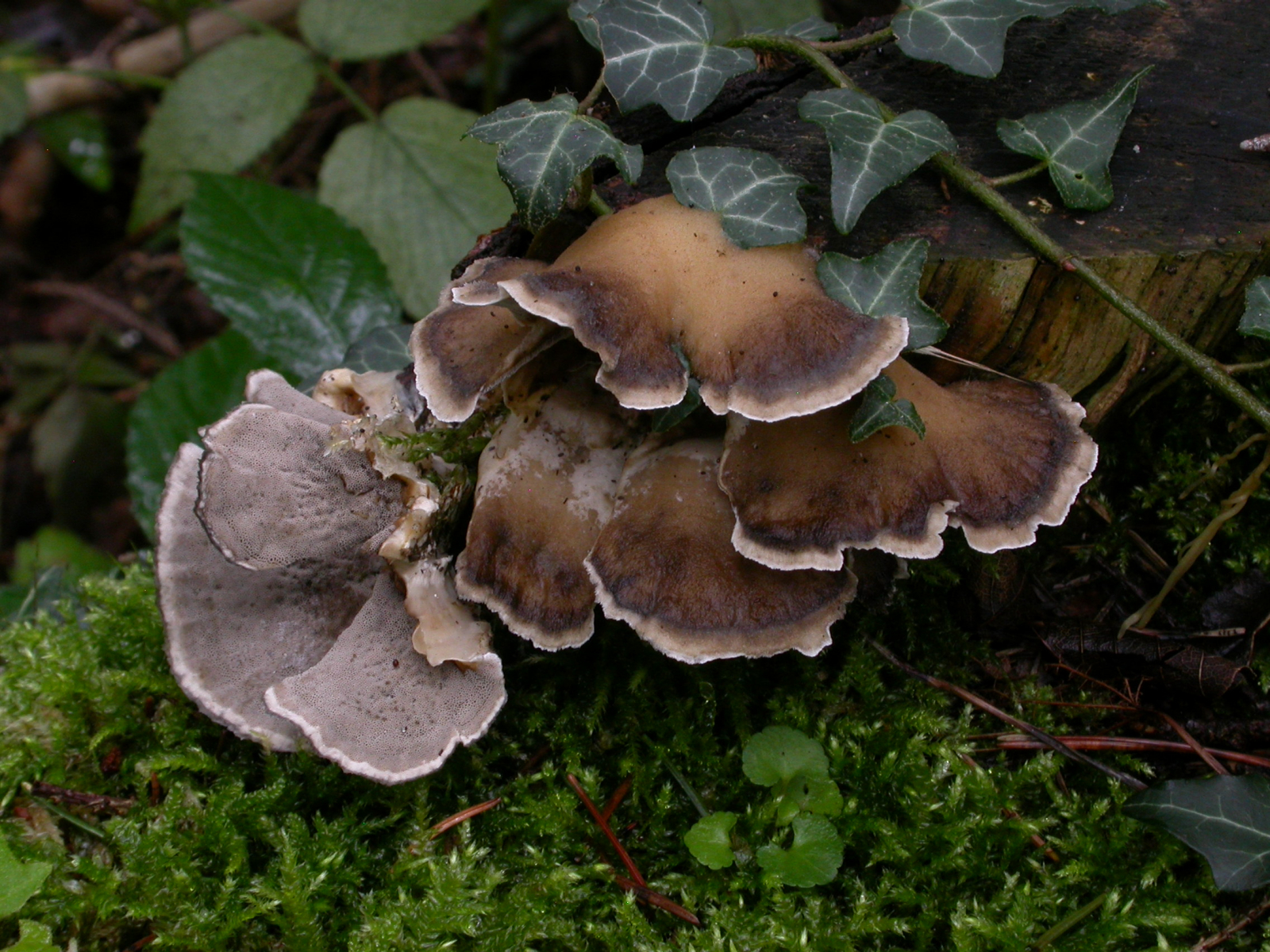 Was Banales, das aber selten fotografiert wird. Bjerkandera adusta, Angebrannter Rauchporling. Hier an einem Fichtenstumpf.