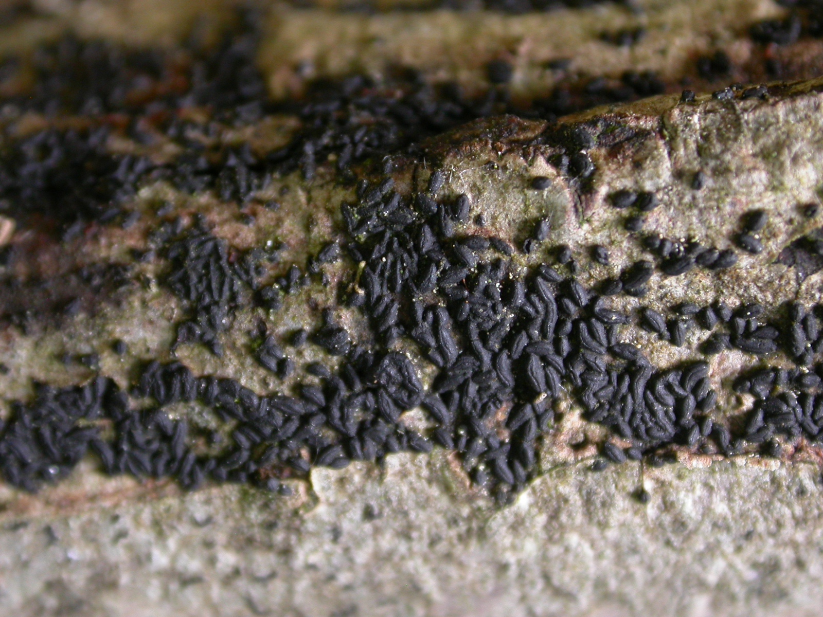 Beim Absuchen eines alten Haselbusches fielen mir diese schwarzen Pünktchen auf, die sich beim Betrachten mit der Lupe als Spaltlippen herausstellten.