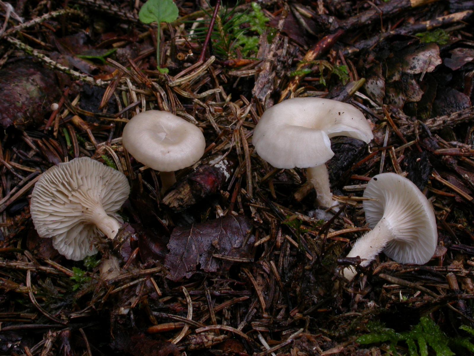Einer der kleinen, giftigen, weißen Trichterlinge. Kenntlich am ranzigen Geruch nach "nassem Huhn".