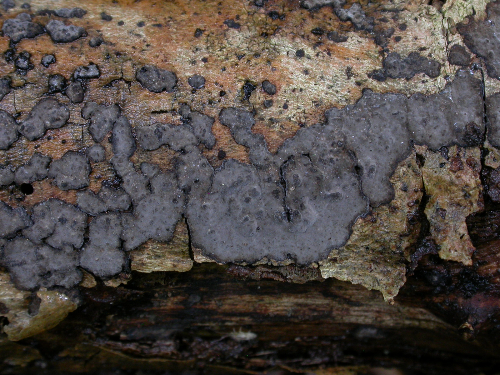 Ein sehr häufiger Rindenpilz an Esche. Peniophora limitata, (Begrenzter) Eschen-Zystidenrindenpilz.