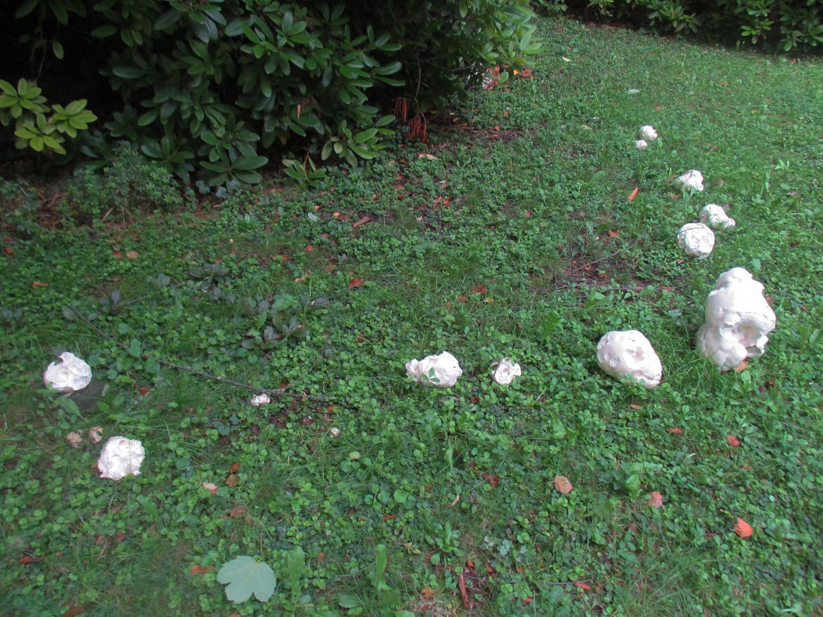 Freunde von paniertem Bauschaum hätten sich bei diesem Halbkreis des Riesenbovistes (C. gigantea) die Bäuche vollschlagen können.