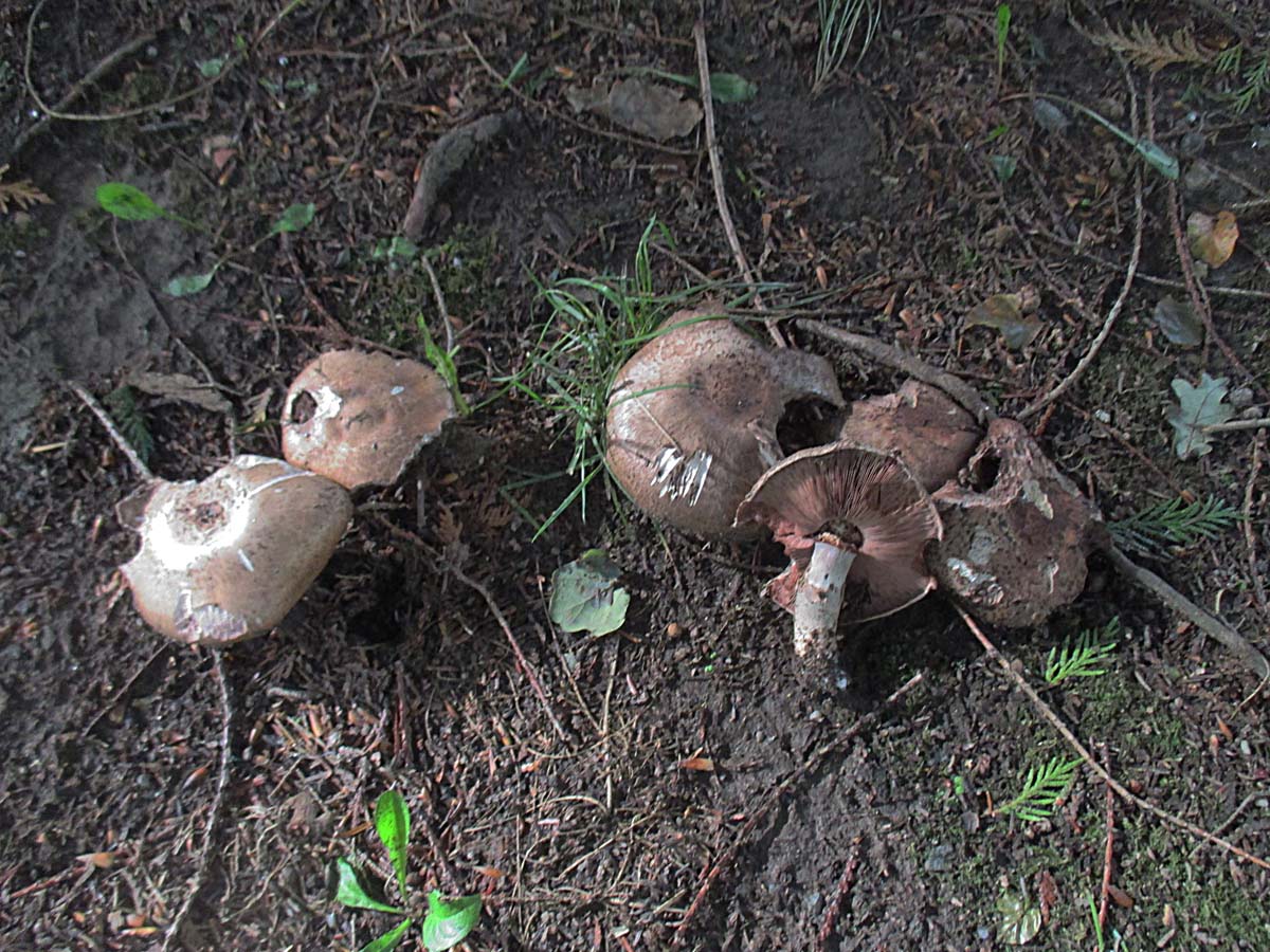 Einer der großen Kremplinge (Paxillus spec.) ein paar alte Blutegerlinge (Agaricus. spec) und Tränende Saumpilze (L.lacrymabunda) standen auch herum.