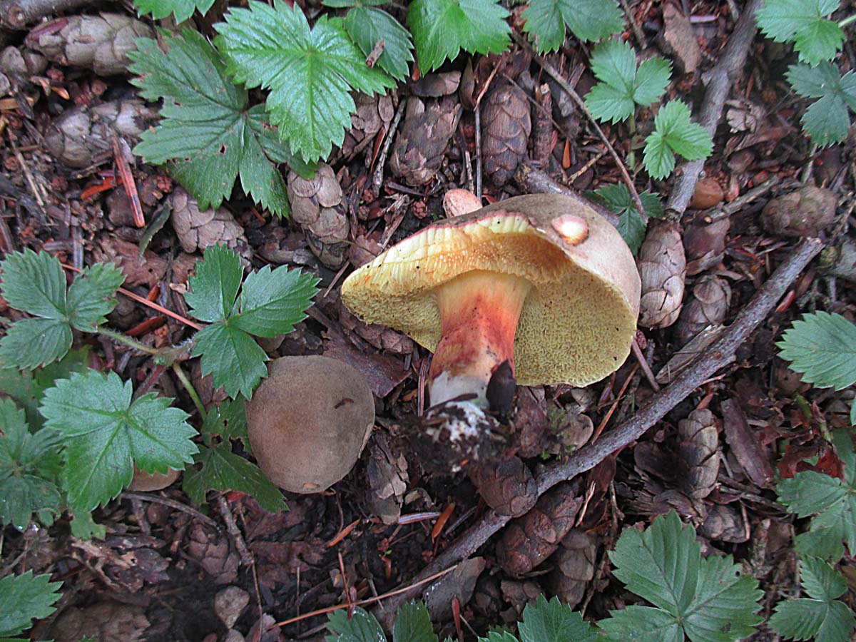 Dafür hat sich wieder einmal ein Schwarzblauender Röhrling (C. pulverulentus) hervorgetraut. Den wollte ich letztens Brummel zeigen aber da gab es keinen.