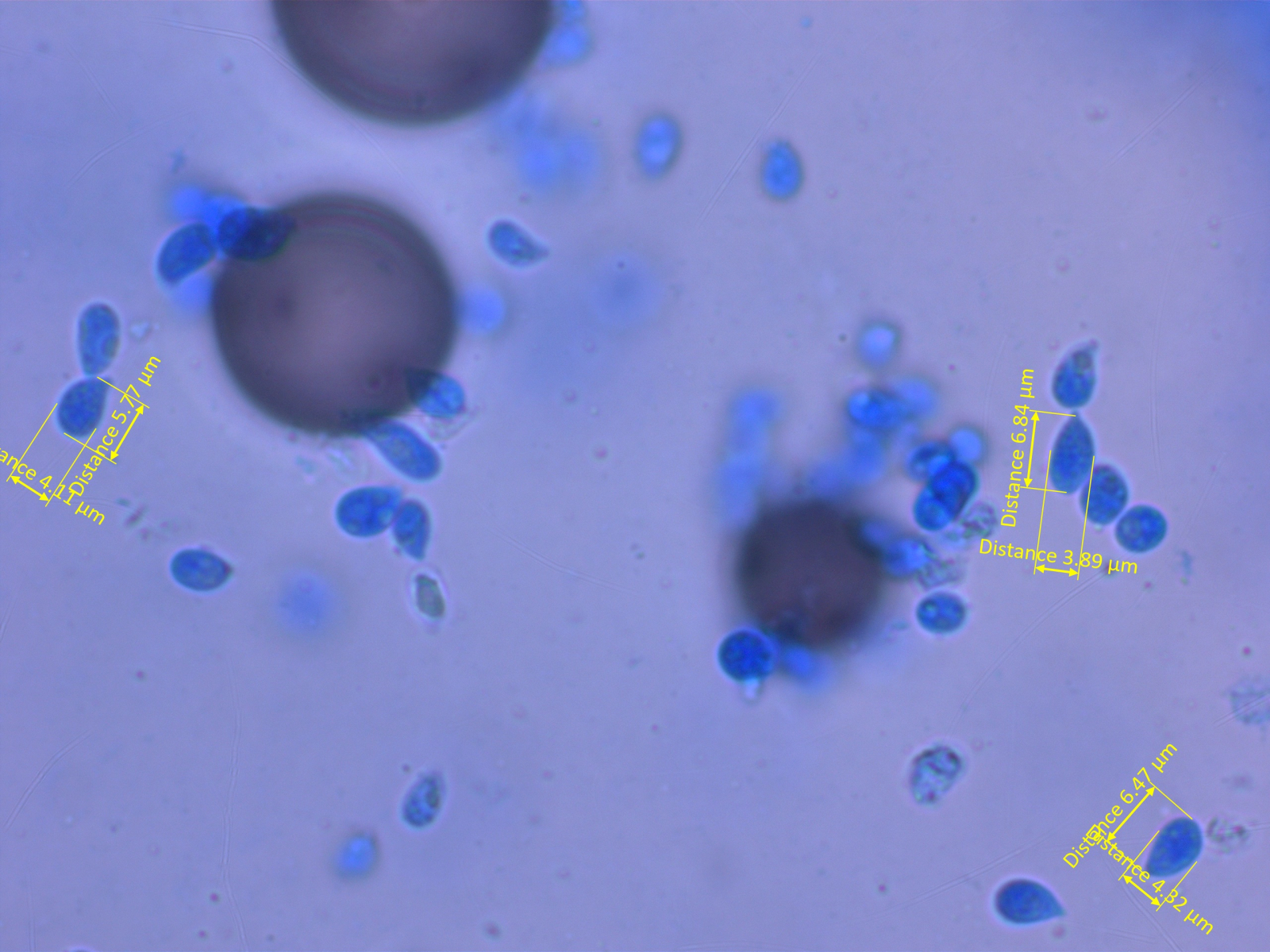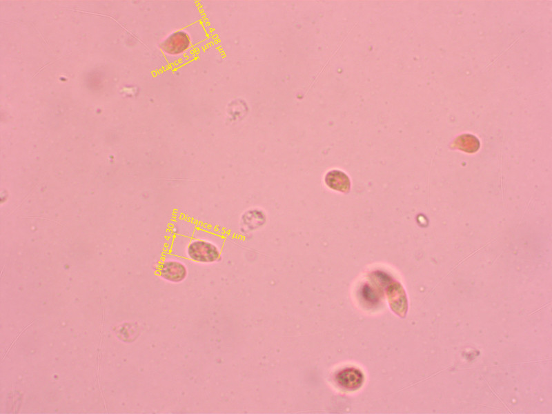 - Sporen deutlich breiter als bei #1, fast immer > 5 µm. Es gibt nur wenige Trichterlinge mit so breiten Sporen.
